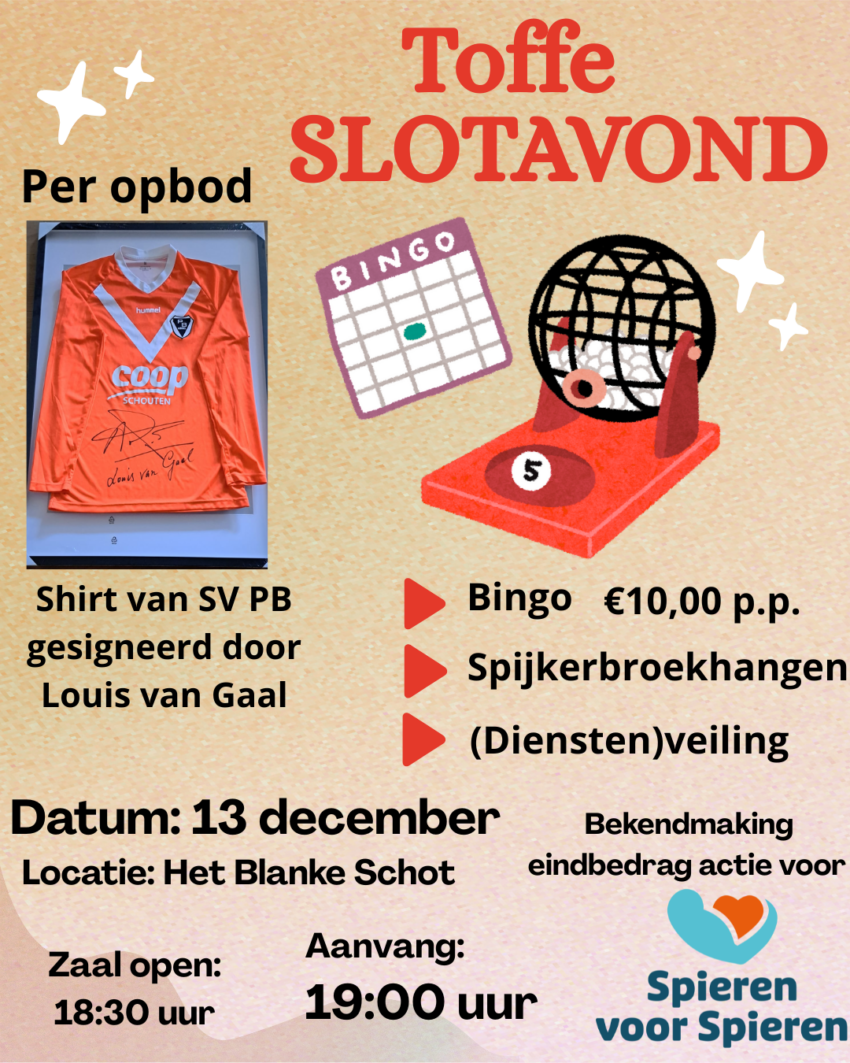 UDDEL – Zaterdag 13 december is het zover de slotavond van de actie voor Spieren voor Spieren! Na ruim drie…