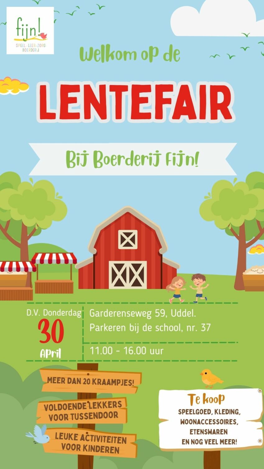 UDDEL – Van harte welkom D.V. 30 april van 11.00-16.00 uur op onze lentefair. Een erf vol kraampjes en activiteiten.…