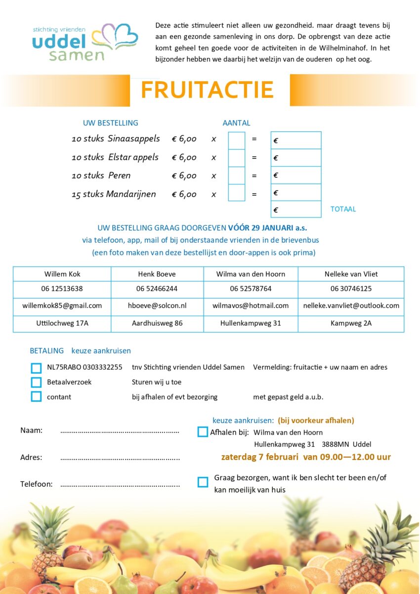 UDDEL – Stichting Vrienden Uddel Samen houdt D.V. 7 februari 2026 haar jaarlijkse fruitactie. U kunt tot 29 januari a.s.…