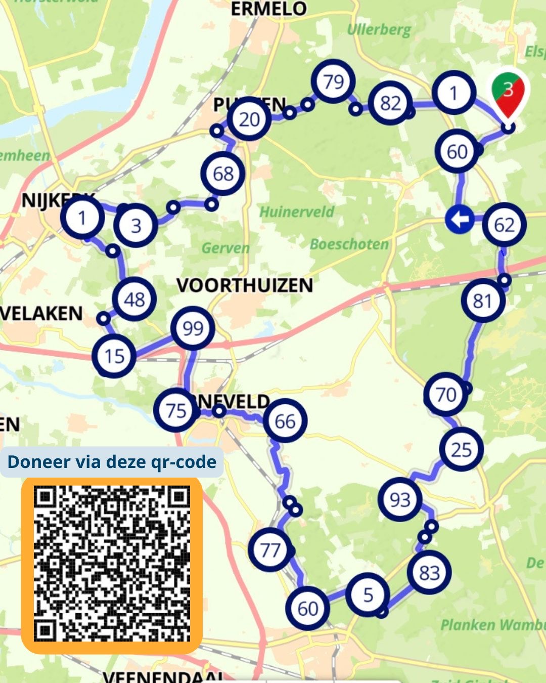 De tocht start én eindigt bij de Viersprong, met vertrek op vrijdag om 21.00 uur en een verwachte finish op zaterdagavond rond 21.00 uur.