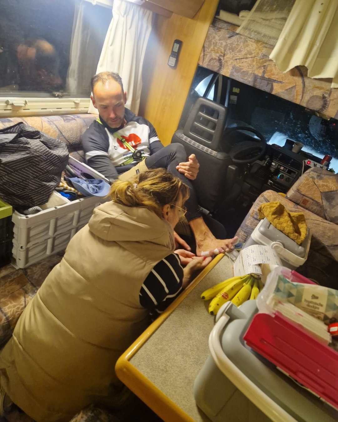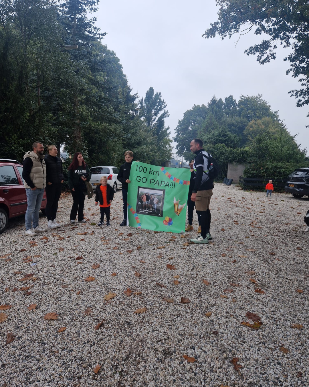 Wij, Eibert, Charlotte, Patrick en Gerhard, hebben de 100 km gelopen. Maar we hadden dit nooit gered zonder de hulp van Alice, Ronald, Erica, Daisy en Henk, die ons onderweg verzorgden en aanmoedigden. Ook de support van iedereen die langs de weg stond, deed ons enorm goed. Dank daarvoor!