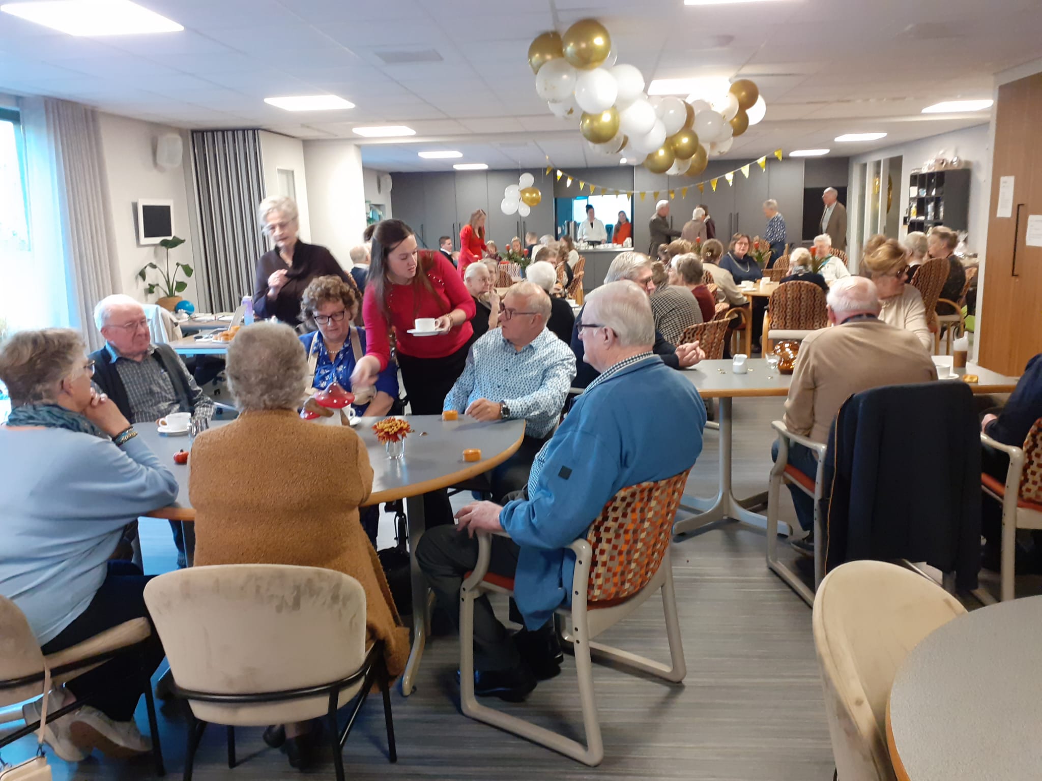 Als eerste was dit het jubileum van Gerrit-Jan en Corrie Teunissen. Zij hadden alle bezoekers van de dagbesteding en alle bewoners van de Wilhelminahof uitgenodigd voor een gezellige ochtend met elkaar. Hierbij was ook hun familie aanwezig.