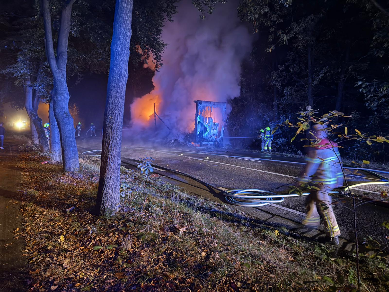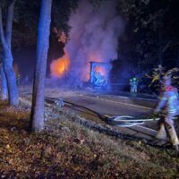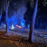 HARDERWIJK – Dinsdagochtend vroeg werd het groot watertransport van Brandweer Uddel opgeroepen voor een voertuigbrand in Harderwijk aan de Leuvenumseweg. Ter plaatse aangekomen stond de volledige oplegger van een vrachtwagen in brand. De chauffeur kon de cabine tijdig loskoppelen van de oplegger waardoor de cabine gespaard bleef. Bij de brand raakte niemand gewond. Het verkeer tussen Apeldoorn en Harderwijk moest tijdelijk omrijden i.v.m. de opruimwerkzaamheden en het oplossen van de schade aan de weg.