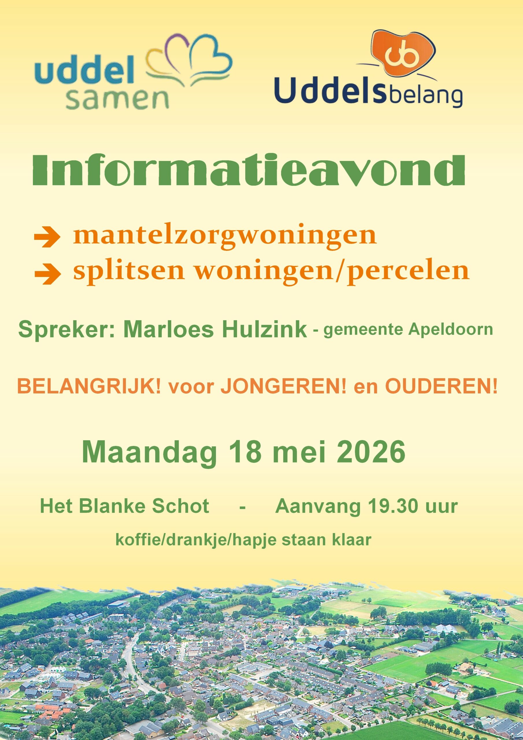 UDDEL – Uddels Belang en Uddel Samen organiseren maandag 18 mei om 19.30 uur in het Blanke Schot een informatieavond over het actuele onderwerp van het splitsen van woningen en kavels.