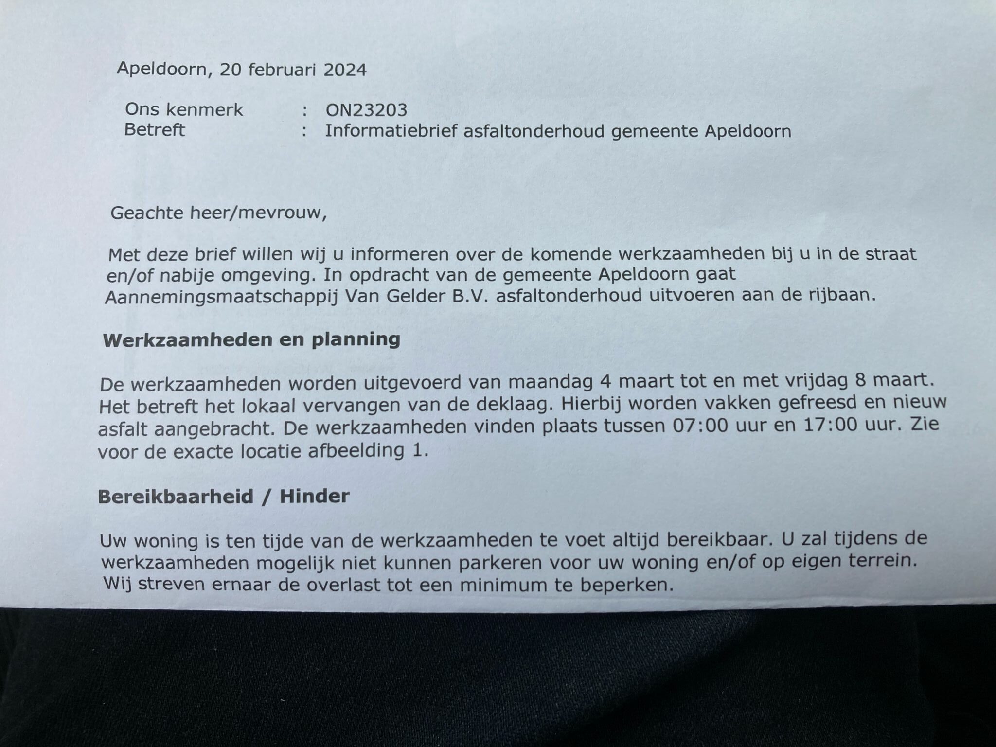 UDDEL – De brief in de bijlage is vandaag door de aannemer bezorgd aan de aanwonenden, een onderdeel van de voorbereiding van het herstel van de kapotte rijbaan. Deze werkzaamheden worden uitgevoerd in week 10.