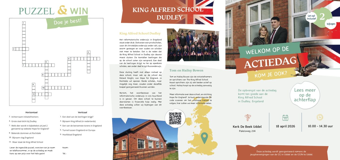 UDDEL – D.V. 18 april wordt er namens de jeugdverenigingen van de GG en GGiN in Uddel een Actiedag georganiseerd. De opbrengst van deze dag is bestemd voor de King Alfred School in Dudley.
