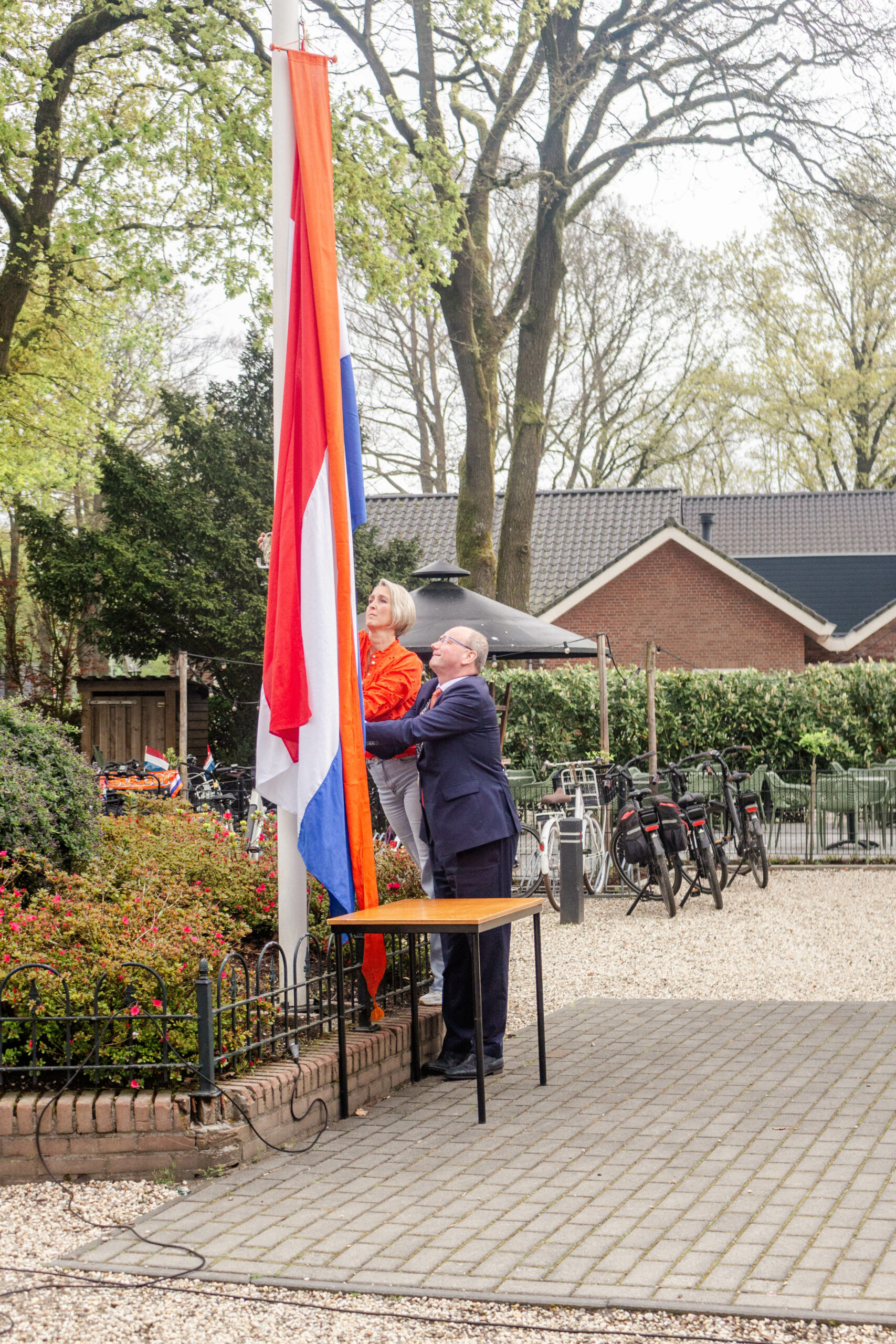 UDDEL – Traditiegetrouw werd in Uddel Koningsdag vandaag begonnen met de Aubade. De aanwezigen zongen onder begeleiding van muziekvereniging Juliana een aantal liederen waaronder het Uddels Volkslied. Er werd afgesloten met het Wilhelmus en een driewervig hoera voor onze Koning Willem-Alexander. Burgemeester Heerts hees samen met Oranjeverenigingvoorzitter Angelique Bronkhorst, de nationale driekleur.