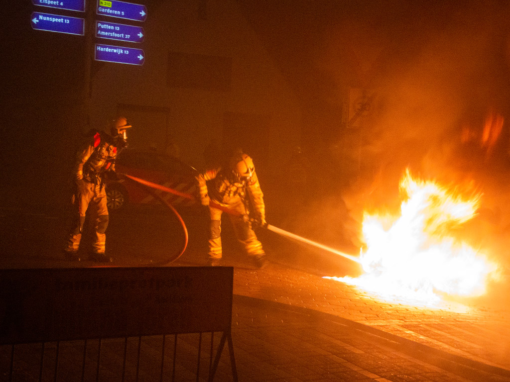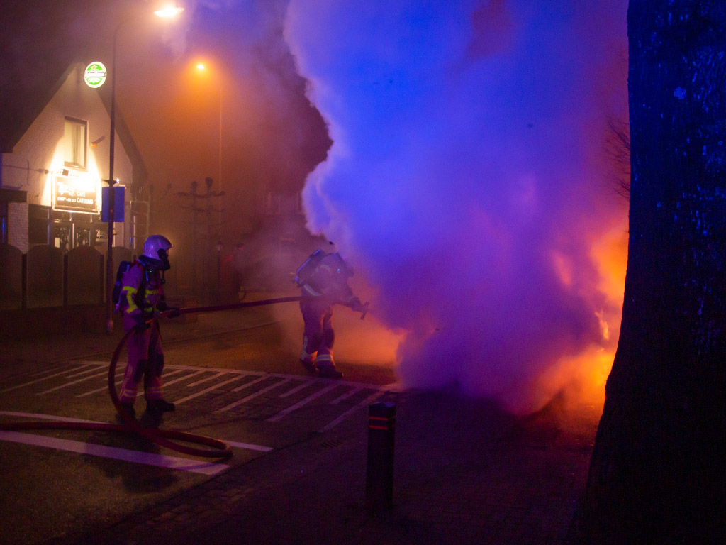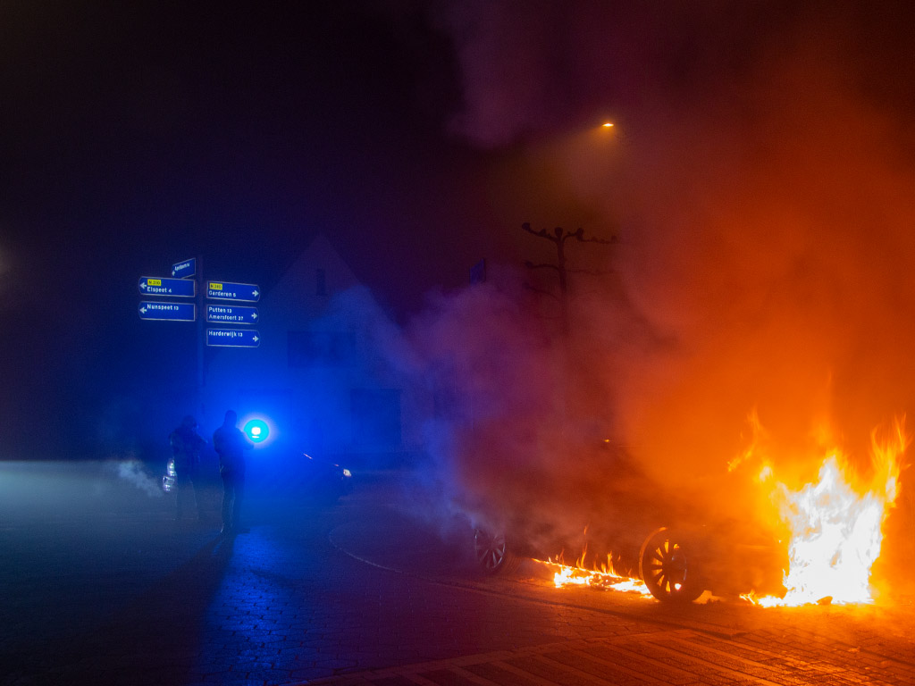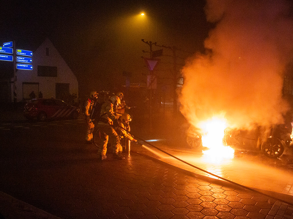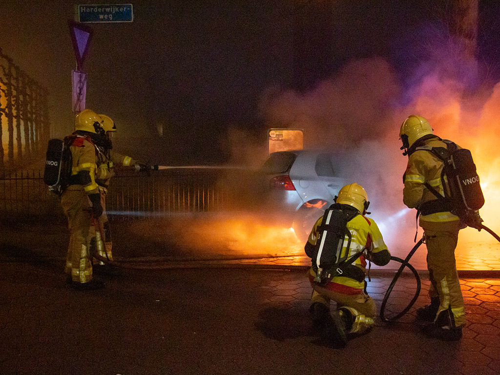 UDDEL – De brandweer is tijdens nieuwjaarsnacht rond half drie opgeroepen voor een autobrand op de Harderwijkerweg / Elspeterweg. Toen de brandweer ter plaatse kwam stond de auto volledig in lichterlaaie.