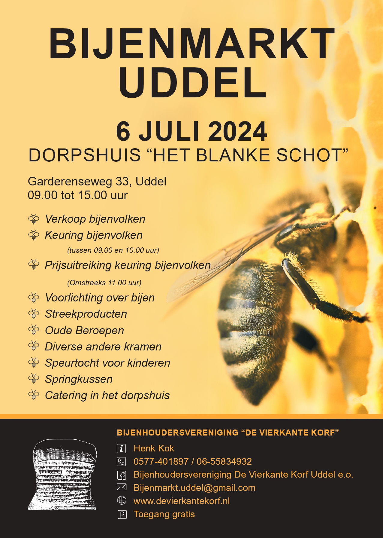 UDDEL – Op zaterdag 6 juli a.s. houdt onze vereniging weer haar jaarlijkse bijen- en honingmarkt. Dit jaar voor de 41e keer.