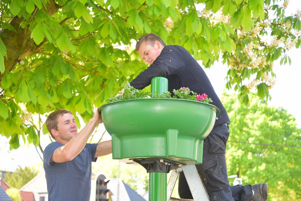 De verzorging van het inplanten en ophangen van de bakken is ook dit jaar weer verzorgd door Bleijenbergs Tuinen en Hoveniersbedrijf Van de Ridder.