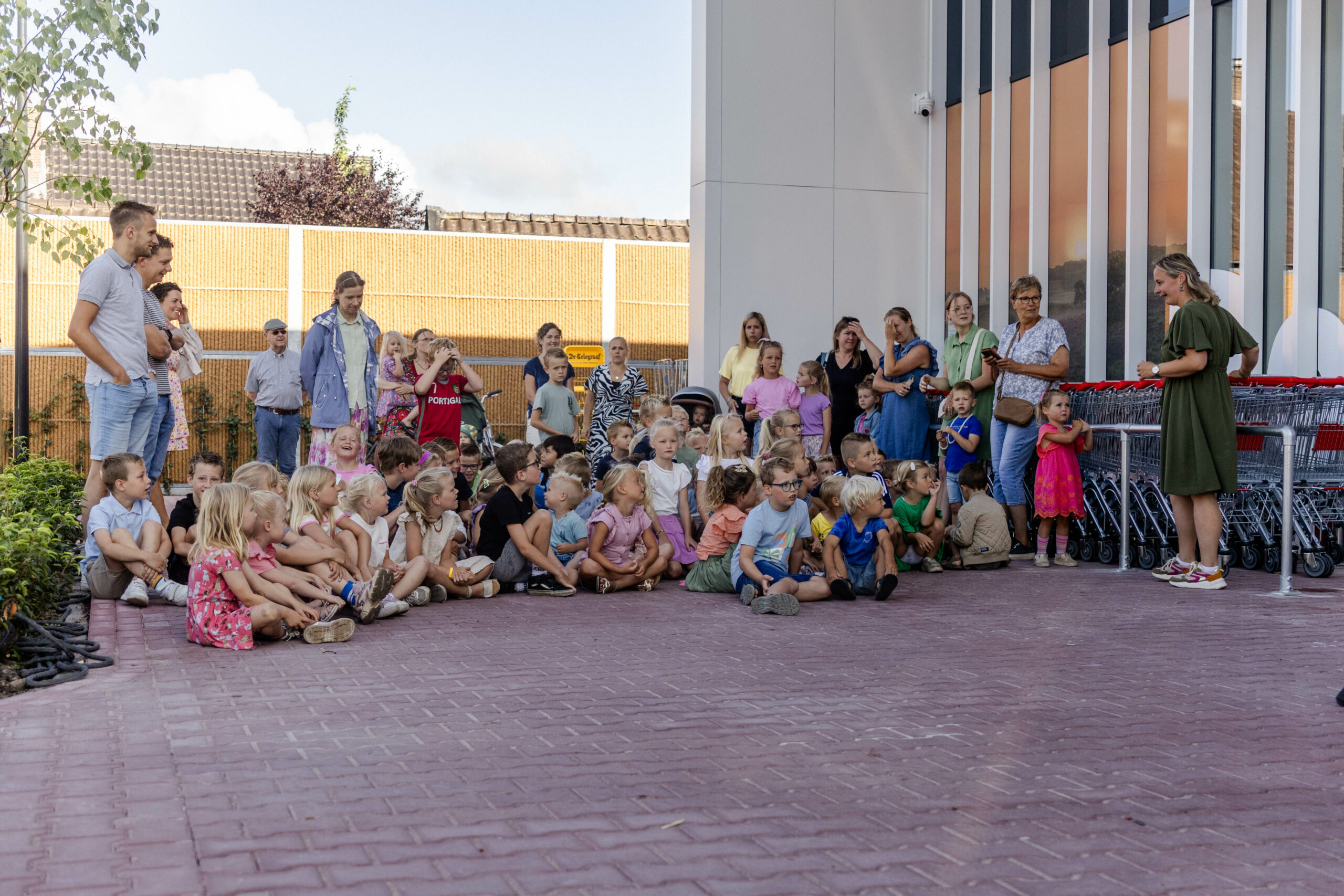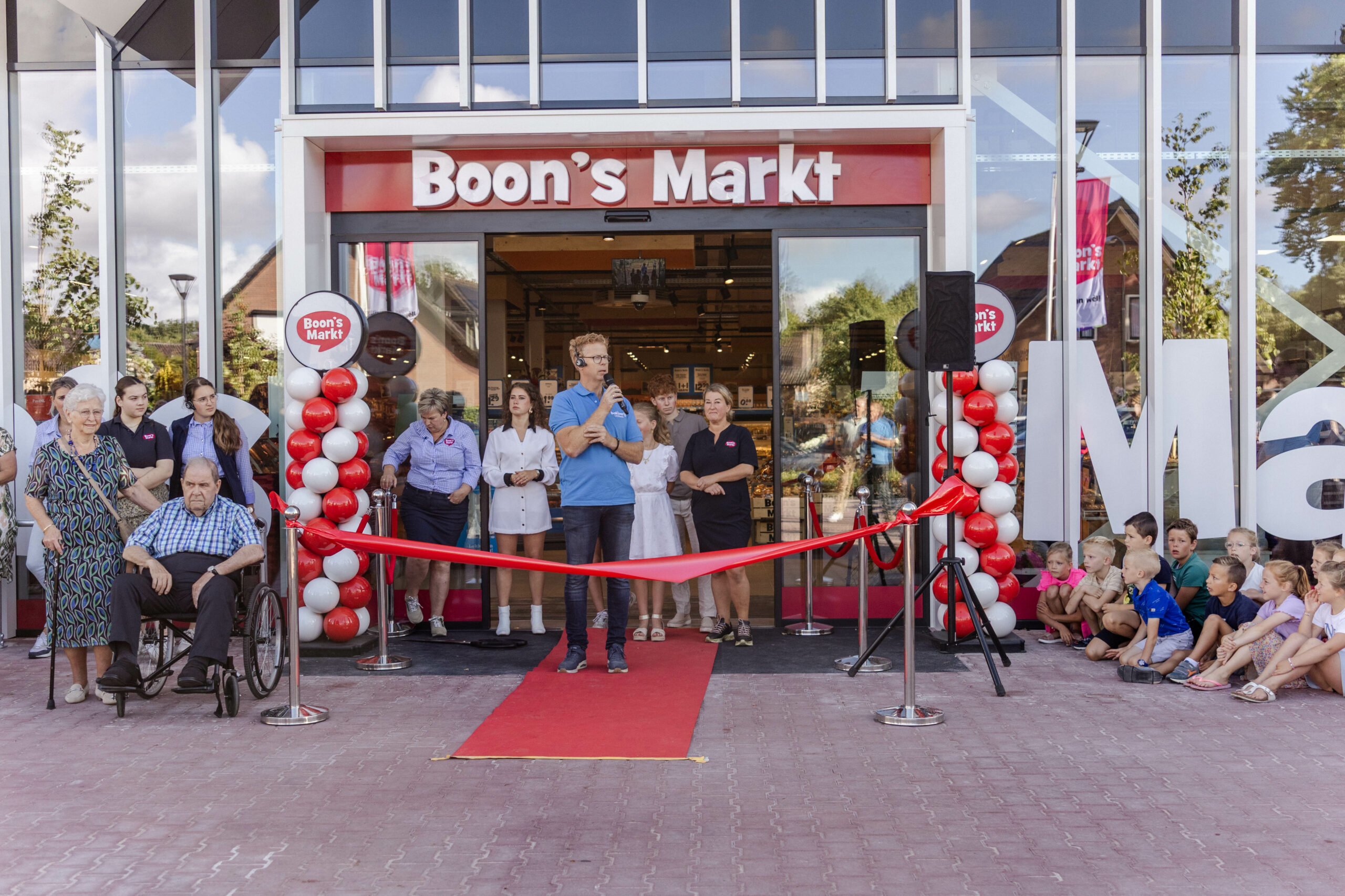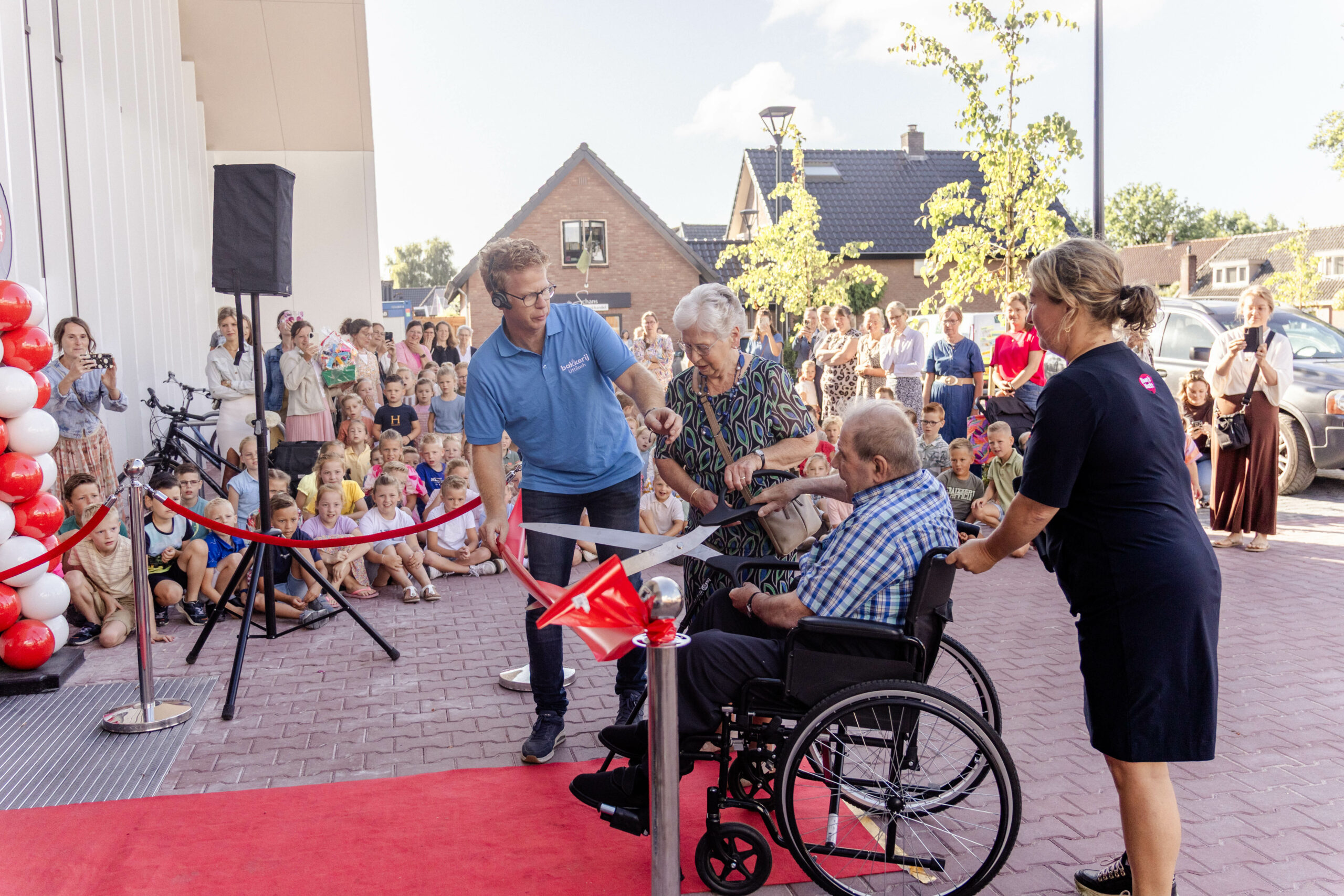 UDDEL – Na de officiële opening van de Boon’s Markt gisteravond was er vanochtend opnieuw een bijzondere opening van de winkel. De deuren werden geopend voor winkelbezoek door een lint te knippen. Dit werd gedaan door Rein Schouten en Eef van Egteren onder toeziend oog van kinderen van de PWA school en de Rehobothschool. Jong en oud kwam op deze manier bij elkaar.