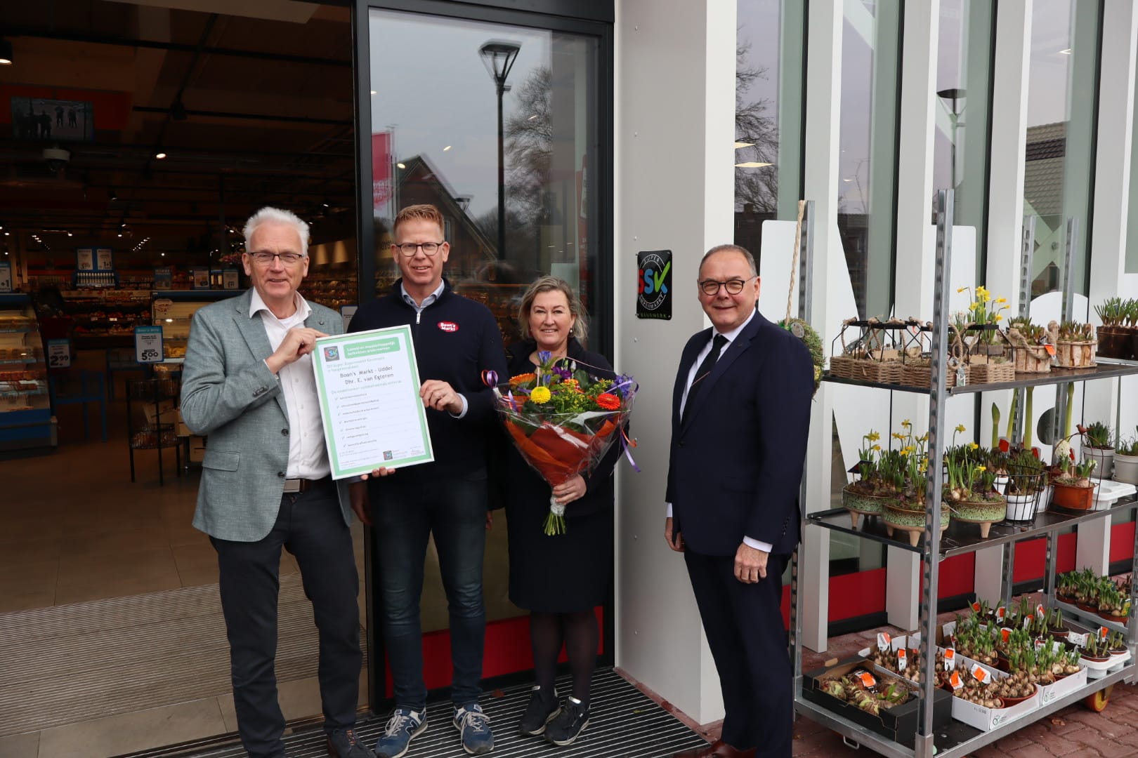 UDDEL – Boon’s Markt Van Egteren in Uddel is onderscheiden met het Super Supermarkt Keurmerk (SSK). Ondernemer Evert-Jan van Egteren ontving het keurmerk op 5 februari 2026 in aanwezigheid van wethouder Henk van den Berge van de gemeente Apeldoorn.