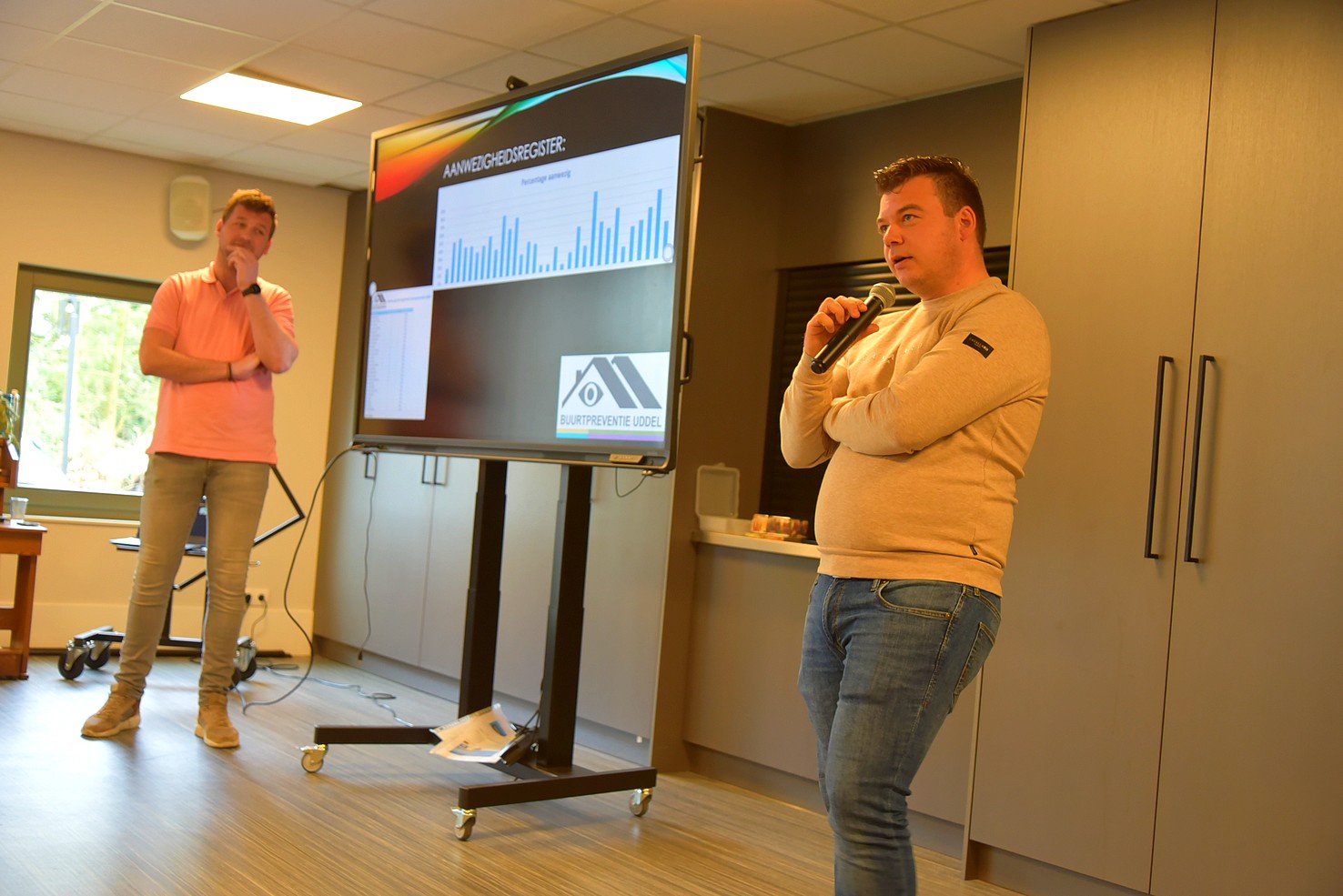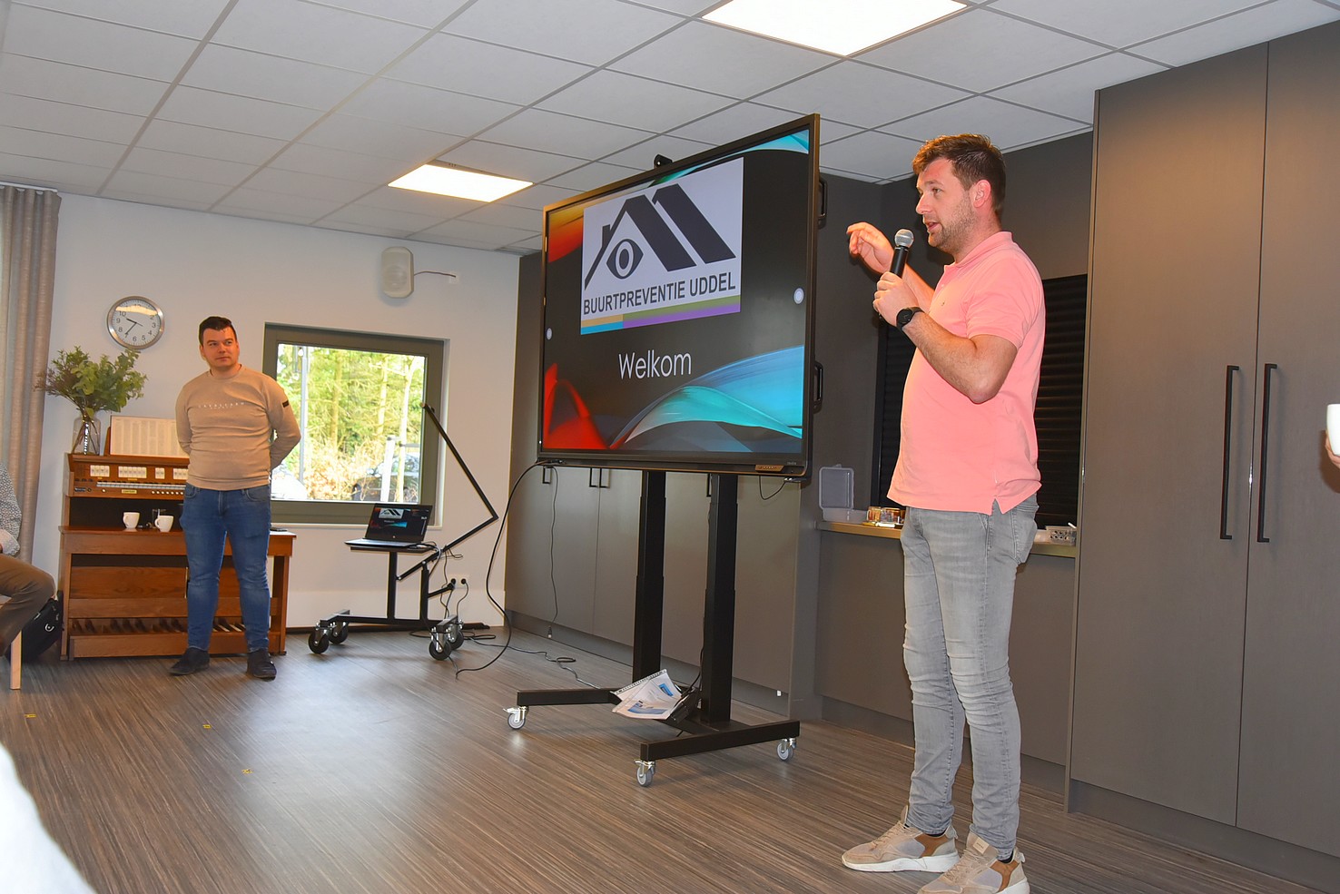 Namens deze werkgroep hebben Herman Van Dalfsen en Pieter Hop aan zo’n 55 senioren van Uddel verteld, welke doelen deze werkgroep zichzelf stelt. Door hen werd uitgelegd hoe deze werkgroep functioneert, wat voor soort resultaten mogen worden verwacht en hoe zij de financiële eindjes aan elkaar breien. Herman en Pieter vertelden een helder, boeiend en overtuigend verhaal. Zij konden laten zien dat de Buurtpreventie Uddel een belangrijke rol speelt om in samenwerking met de Uddelse bevolking en de politie misdrijven te voorkomen of snel op te lossen. Belangrijk is dat een verdachte situatie door de Uddelenaren snel aan hen wordt doorgegeven (nummer: 0577-700203).