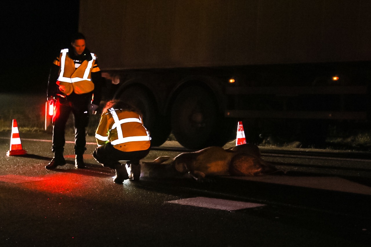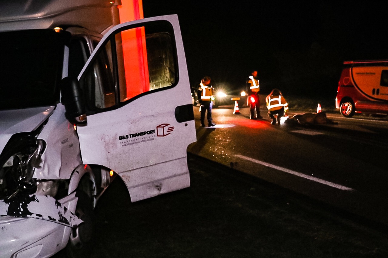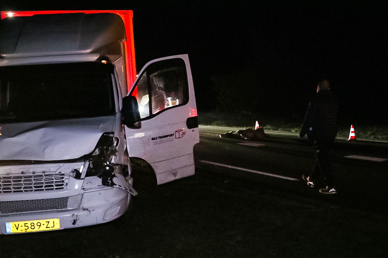 Het vrachtwagentje liep door de botsing flinke schade op aan de voorkant en moest worden afgesleept. Het dode dier is door een faunabeheerder opgehaald.