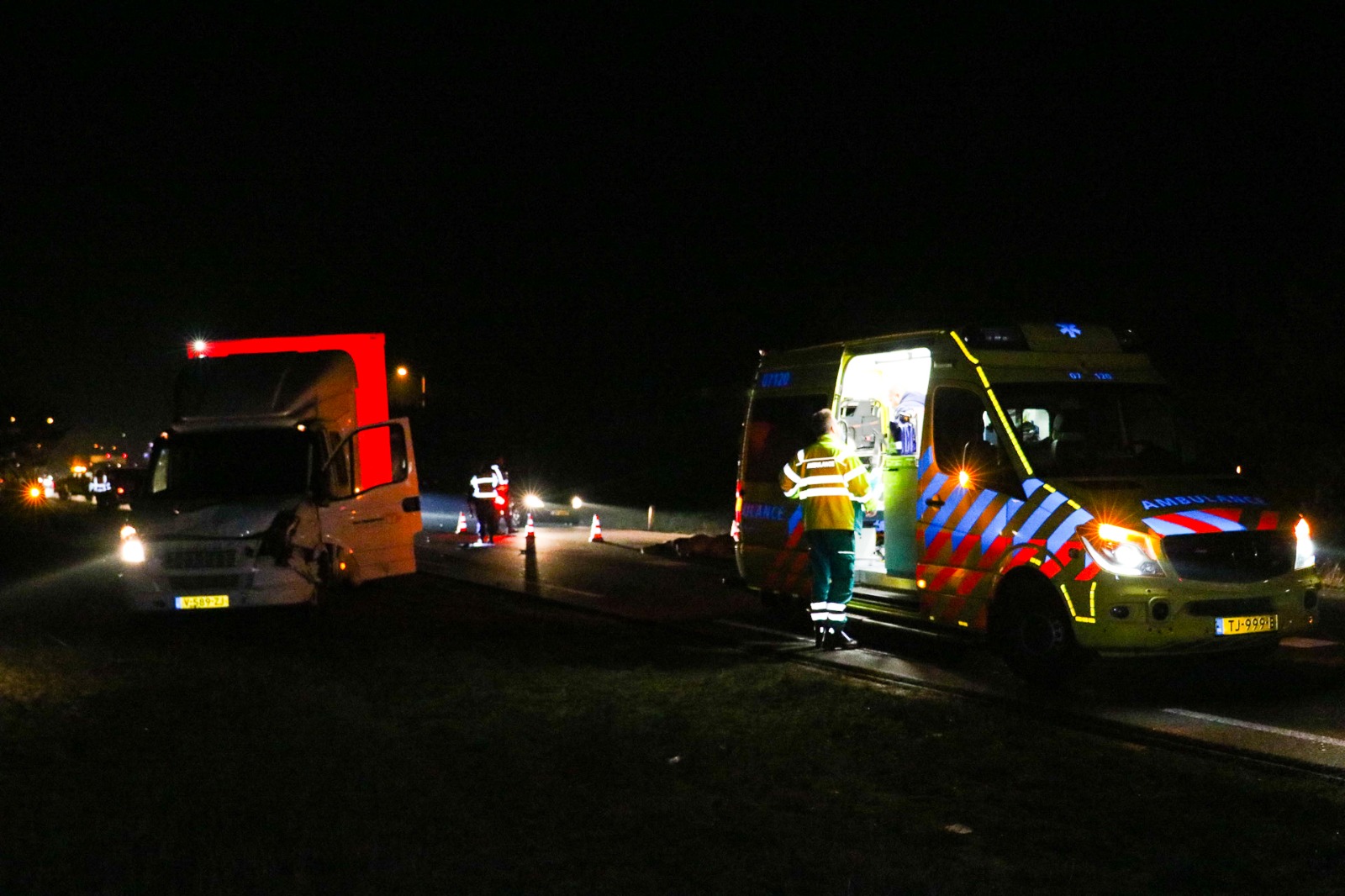 Na aanrijding werden twee rijstroken van de provinciale weg afgesloten. Dit betekende dat het verkeer via de middenberm het ongeval moest passeren.