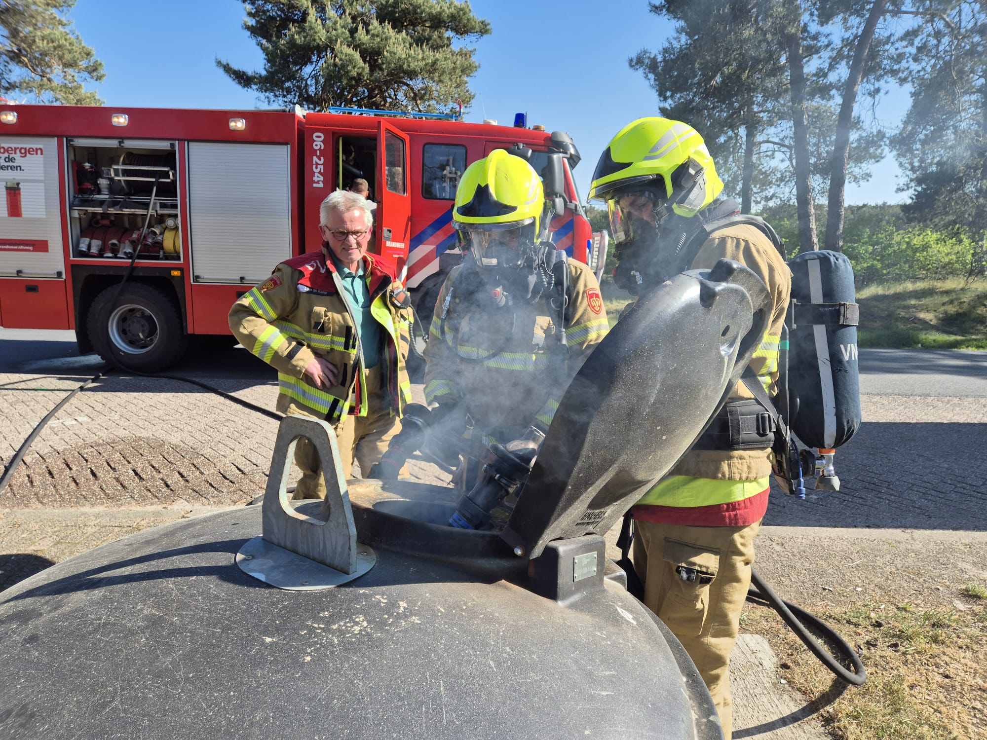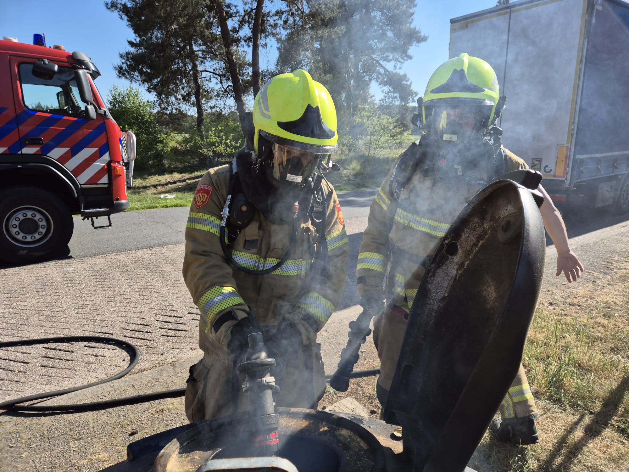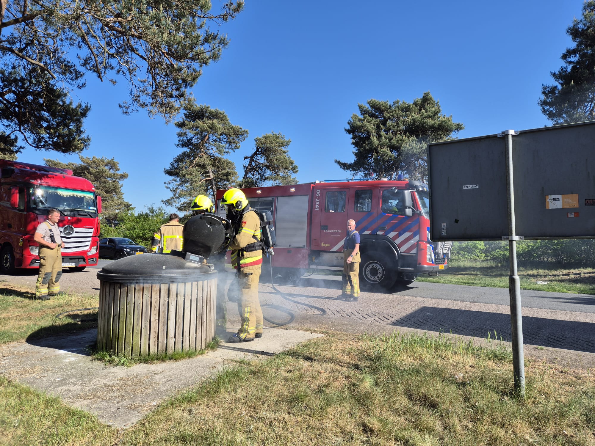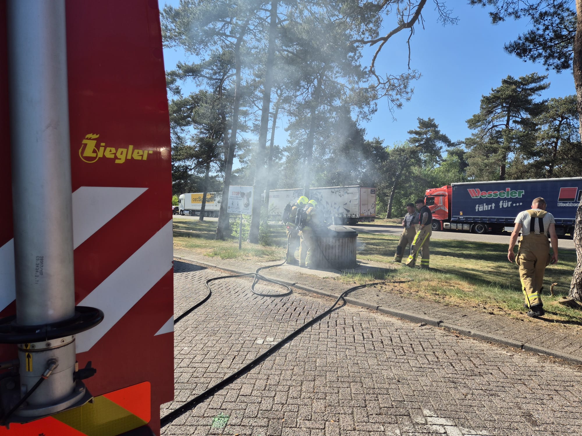 UDDEL – Op een parkeerplaats naast de A1 brak dinsdagmiddag rond 17.00 uur brand uit in een container. Brandweer Uddel kwam ter plaatse om de brand te blussen.