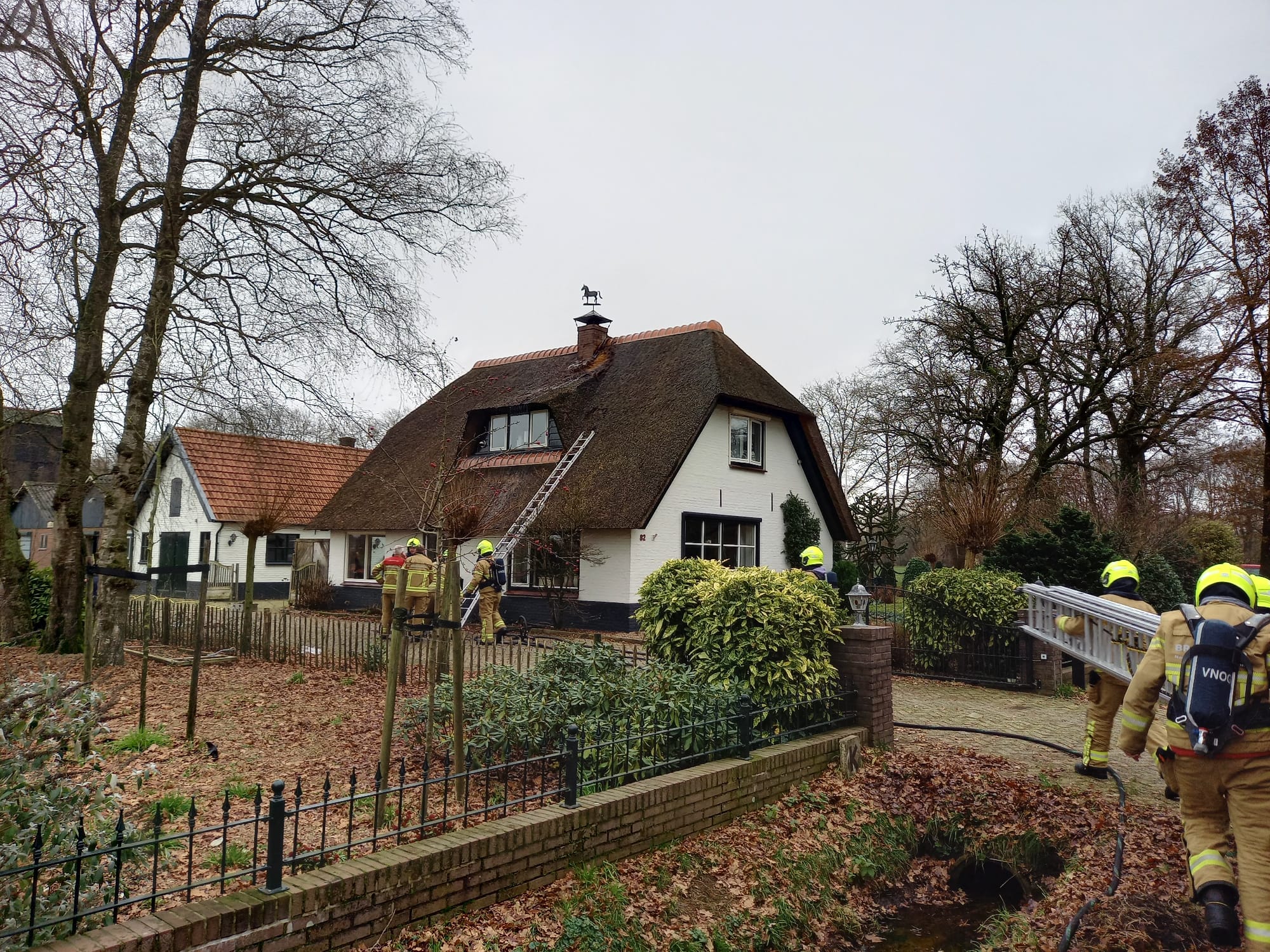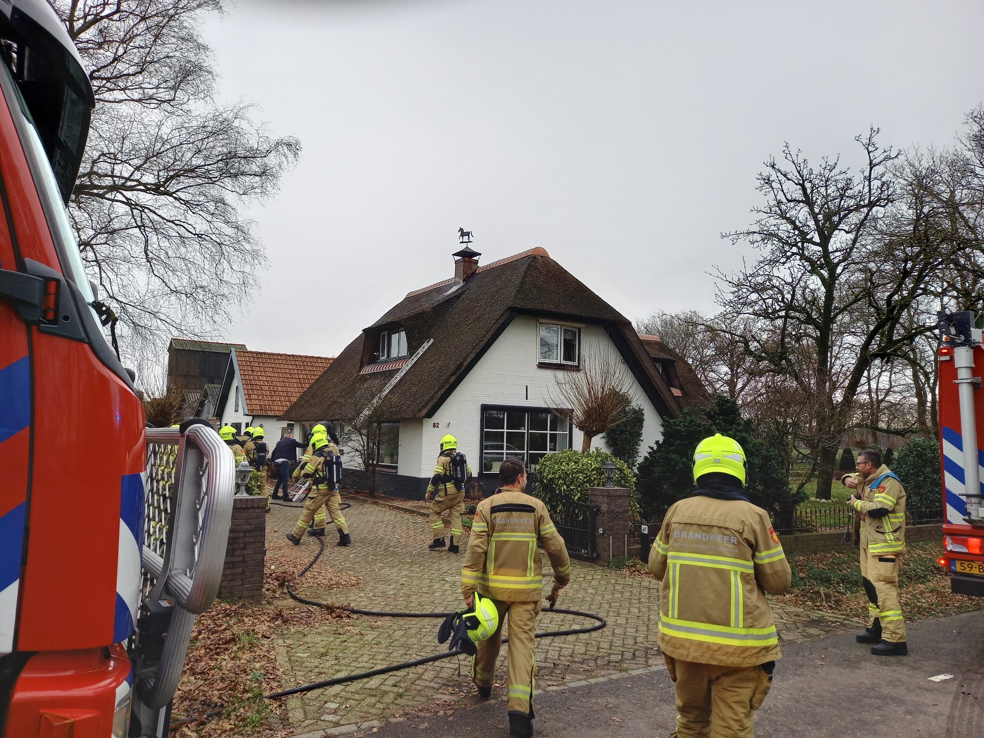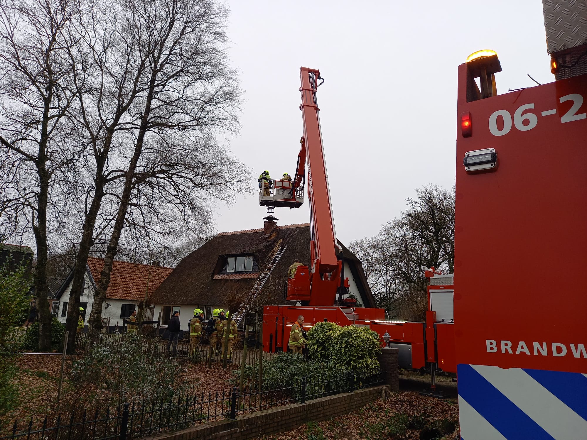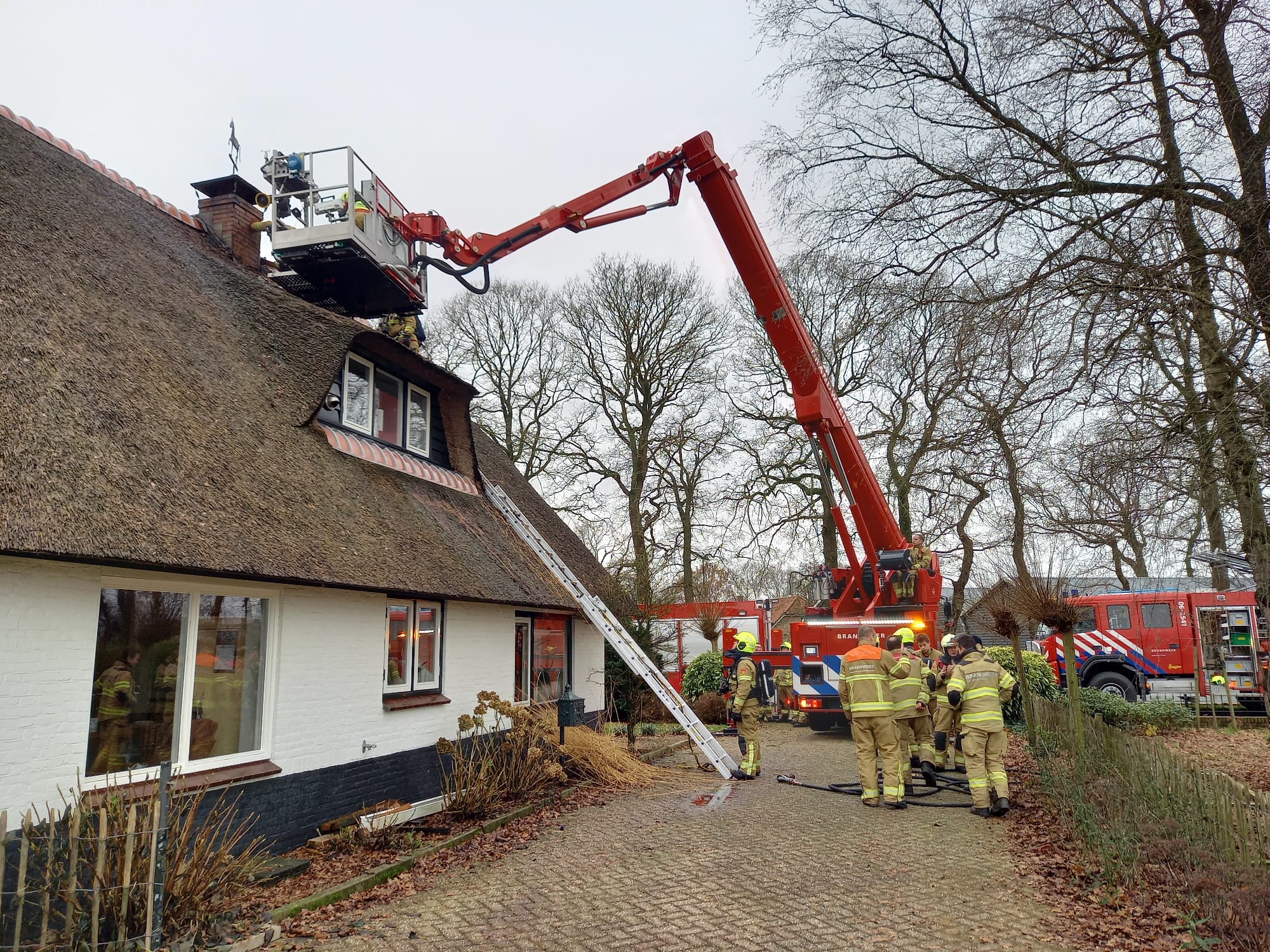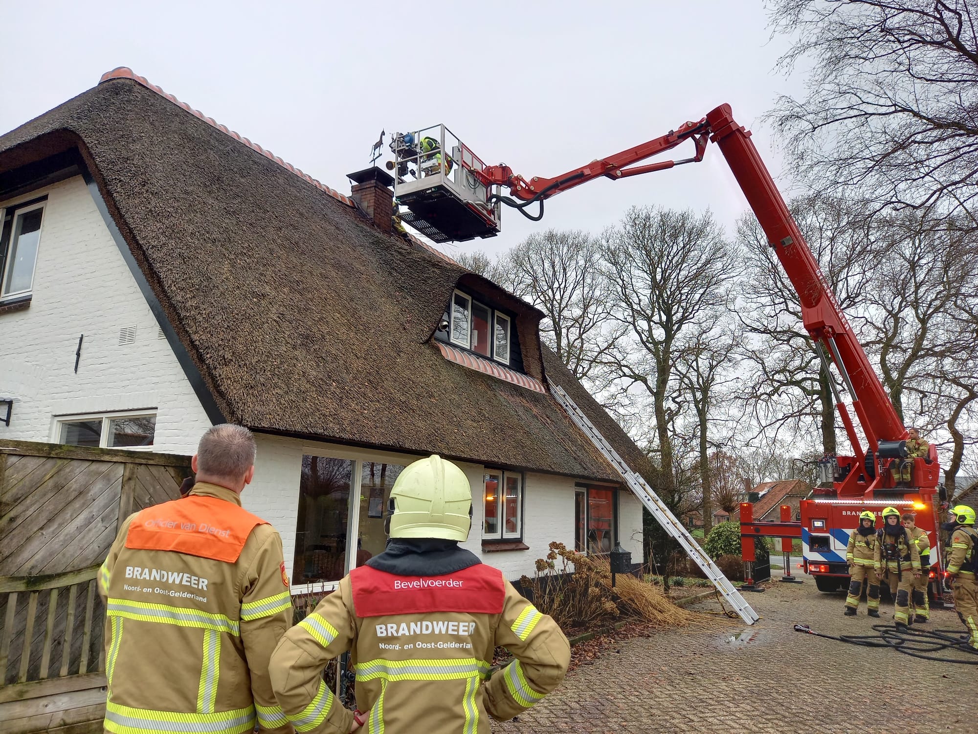 Eerder deze dag is Brandweer Uddel uitgerukt voor een schoorsteenbrand aan de Meervelderweg. Omdat het een woning met een rieten dak betrof werd brandweer Garderen en Apeldoorn mee gealarmeerd. Het bleek te gaan om een kleine brand in het rietdak. Door snel een blussing in te zetten op het dak bleef de schade beperkt. De schoorsteen werd geveegd met behulp van de hoogwerker. De brand werd ontdekt door een voorbijganger.
