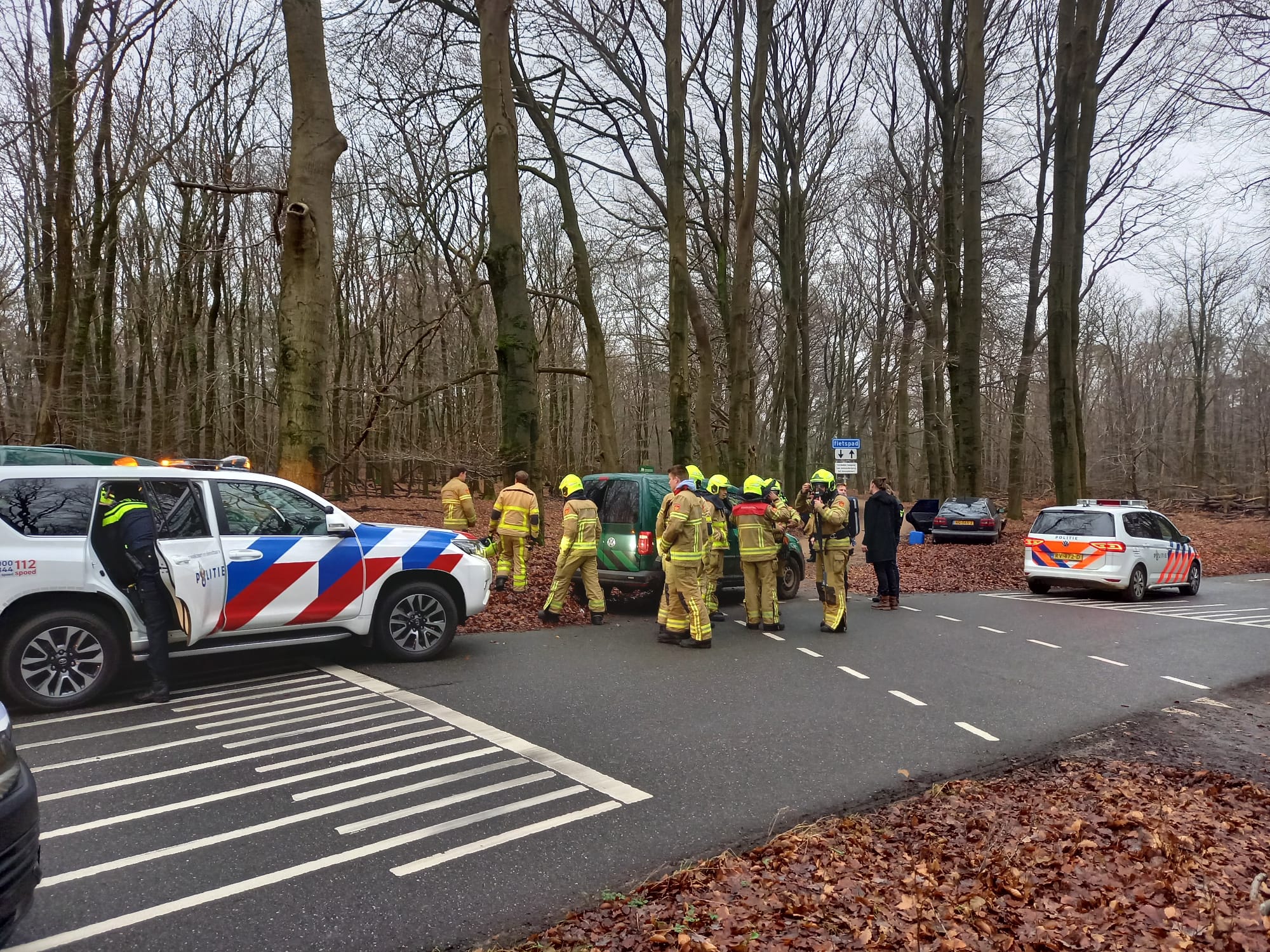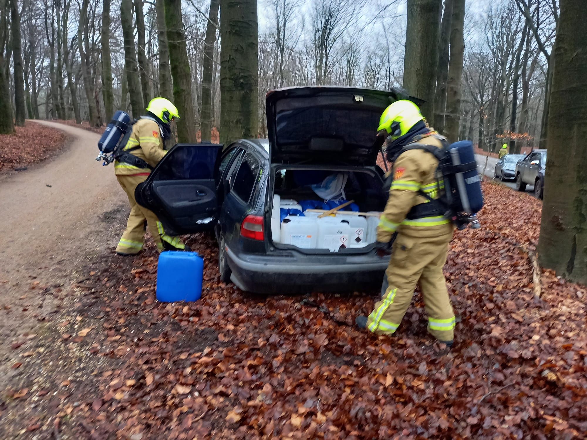 UDDEL – Zaterdagmiddag 16 december werd Brandweer Uddel opgepiept om een meting te verrichten aan de Aardhuisweg. Het bleek te gaan om een gecrasht voertuig. Deze was tegen een boom geklapt na een achtervolging door de politie. Het voertuig bleek afgeladen te zijn met vaten met een onbekende vloeistof.