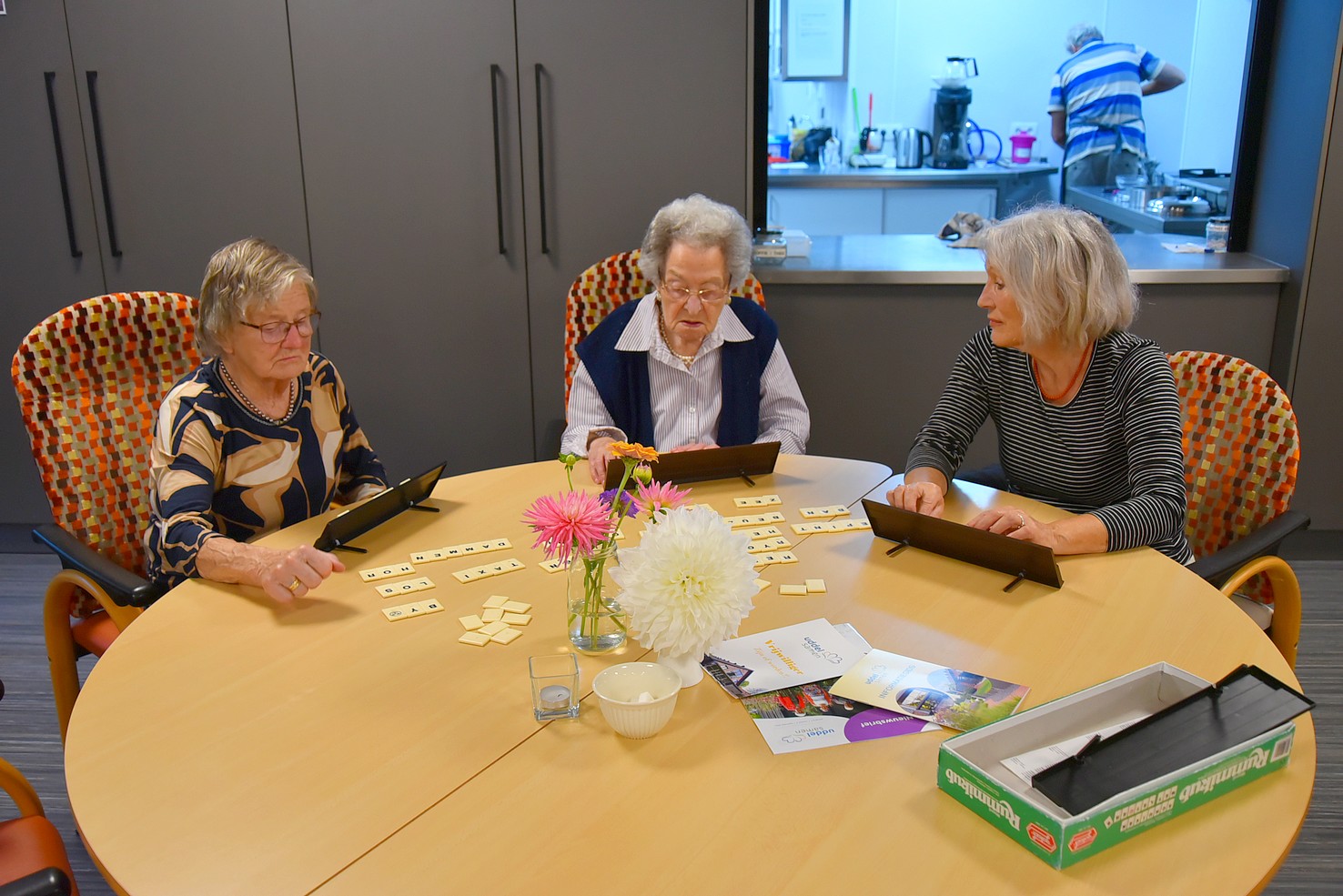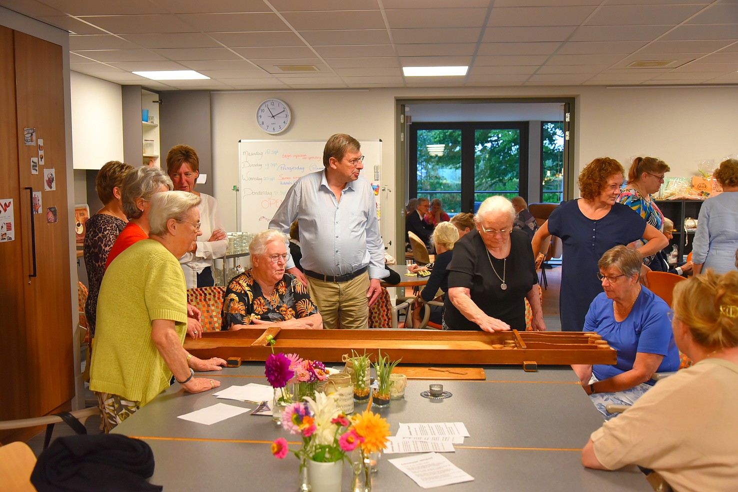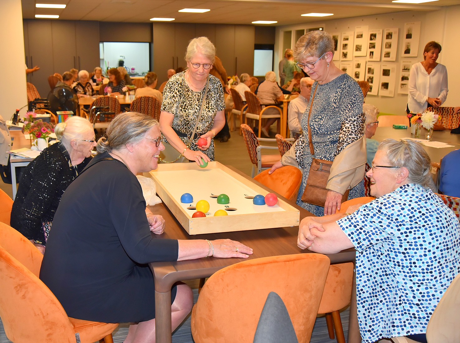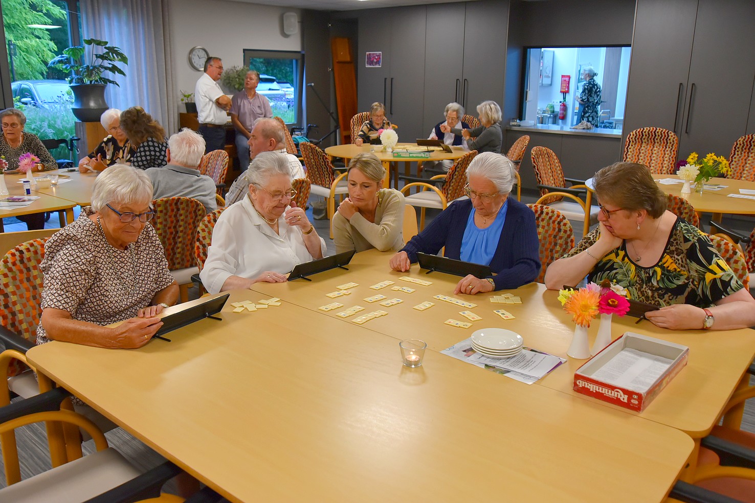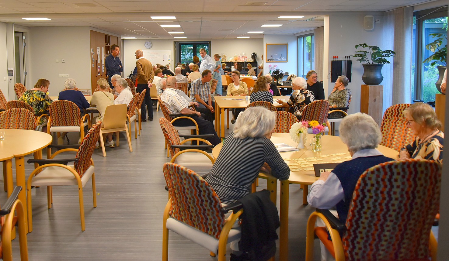 Omdat we op een doordeweekse dag ons programma met dagbesteding hebben, nodigden we niet onbeperkt mensen uit, maar mocht elke vaste bezoeker twee personen uitnodigen: één familielid of mantelzorger en één persoon die anders nooit in de Wilhelminahof komt. Hier werd goed gebruik van gemaakt: we verwelkomden maar liefst 80 mensen die een dag(deel) dagbesteding beleefd hebben. En dat viel in de smaak!