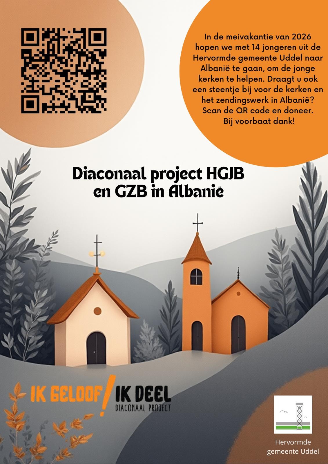 UDDEL – Wij, een groep van 14 jongeren uit de Hervormde Gemeente Uddel, gaan D.V. 25 april t/m 2 mei 2026 op reis naar Albanië. Tijdens deze reis willen wij jonge kerken gaan ondersteunen, evangeliseren en hulp bieden aan mensen in hun moeilijke omstandigheden. We gaan met elkaar een bedrag inzamelen van € 10.000,-. We willen u vragen om lege flessen te sparen. Deze mogen dan ingeleverd worden in Hervormde Kerk op 1 december, 5 januari, 2 februari, 2 maart en 6 april van 19.00u tot 20.30u. Ook is een vrije gift van harte welkom! Zie QR-code.