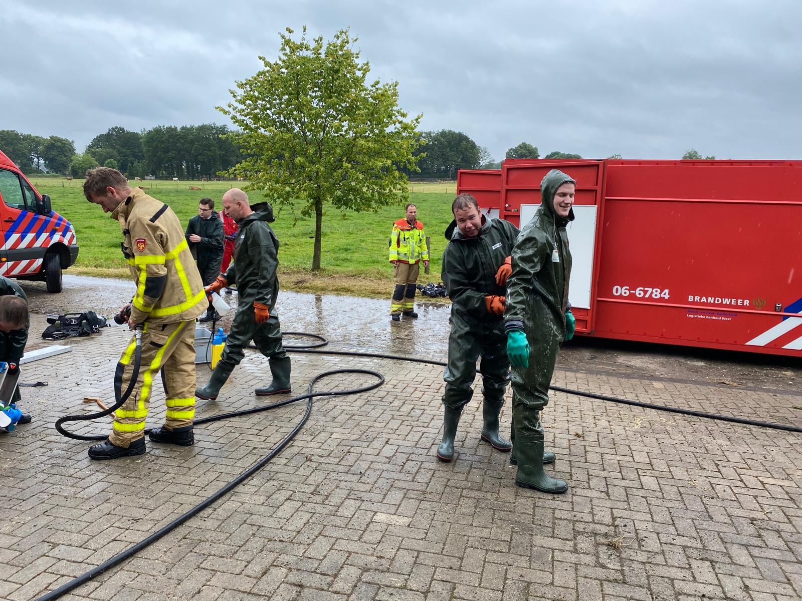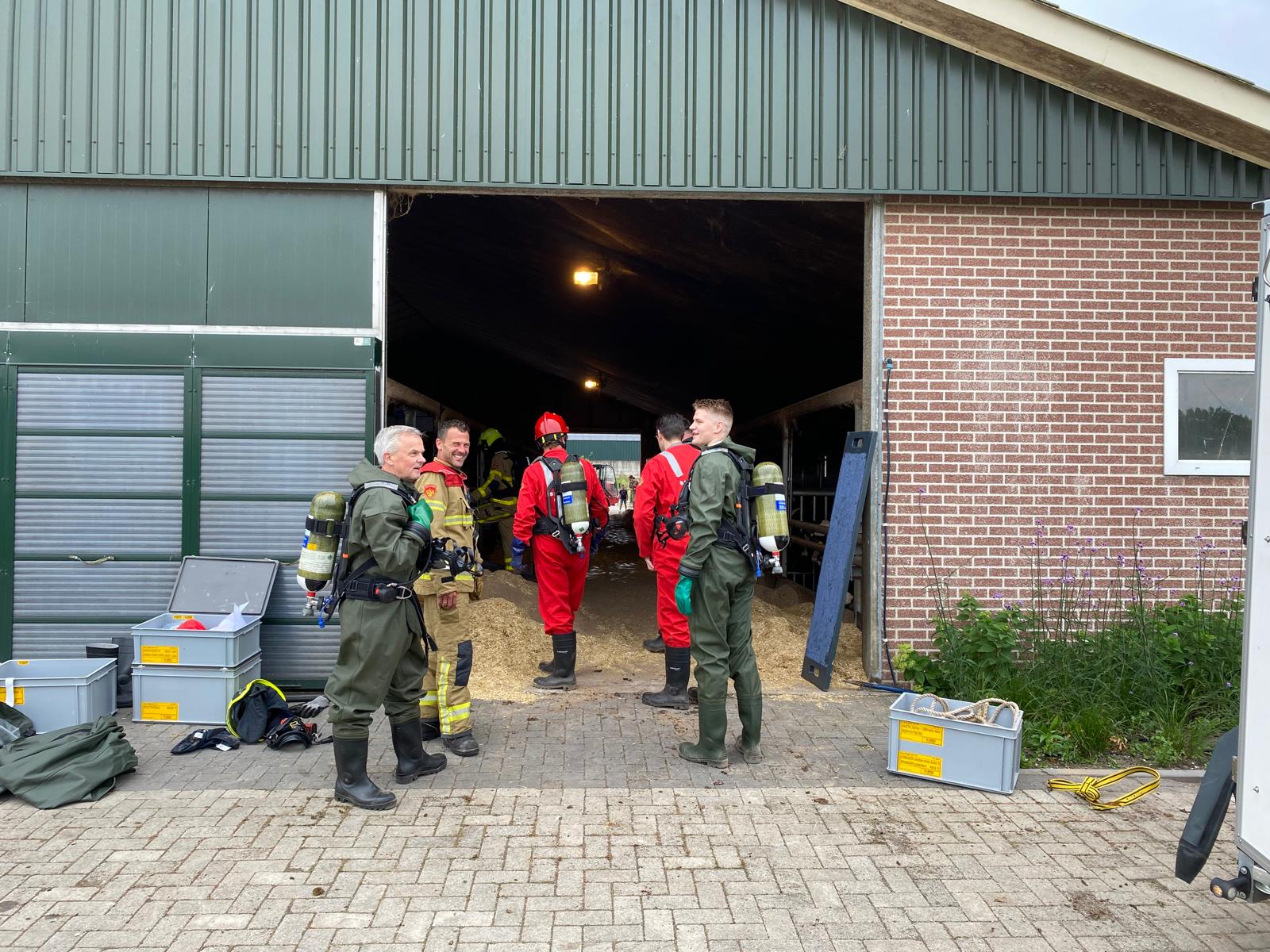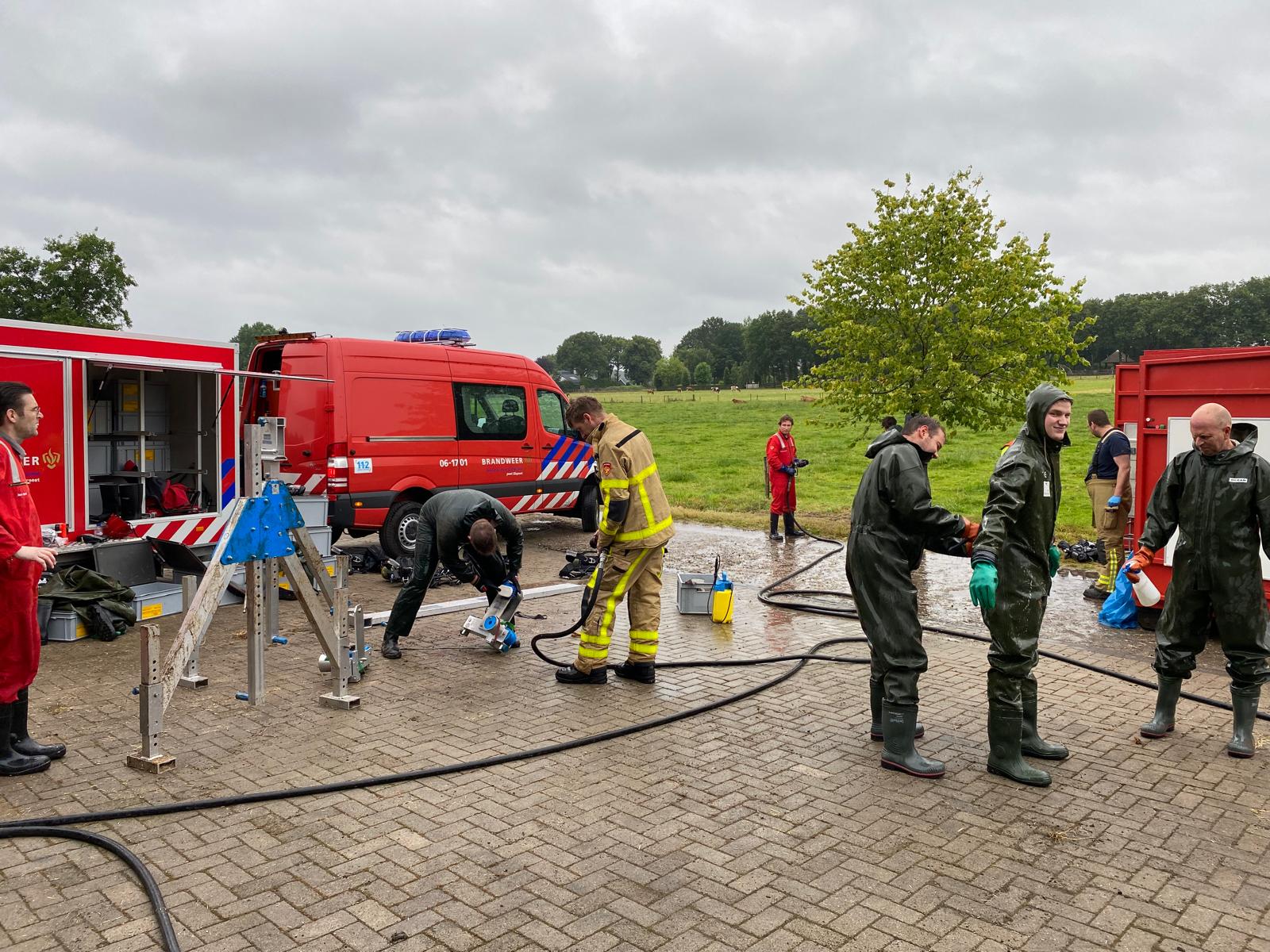 UDDEL- Vanochtend werden Brandweer Uddel en Brandweer Elspeet opgepiept voor een melding ‘Dier in put/kelder’ aan de Veenkamp in Uddel. Ter plaatse bleek dat het om meerdere kalveren ging die gered moesten worden met behulp van de veetakel. Een uitdagende klus waarin hard gewerkt werd om de dieren weer op het droge te krijgen.