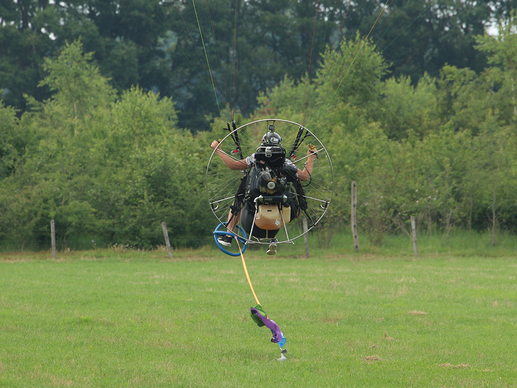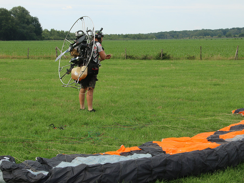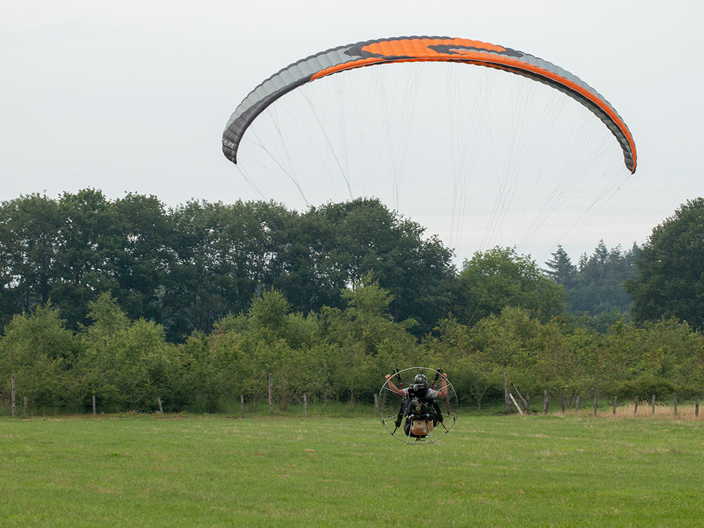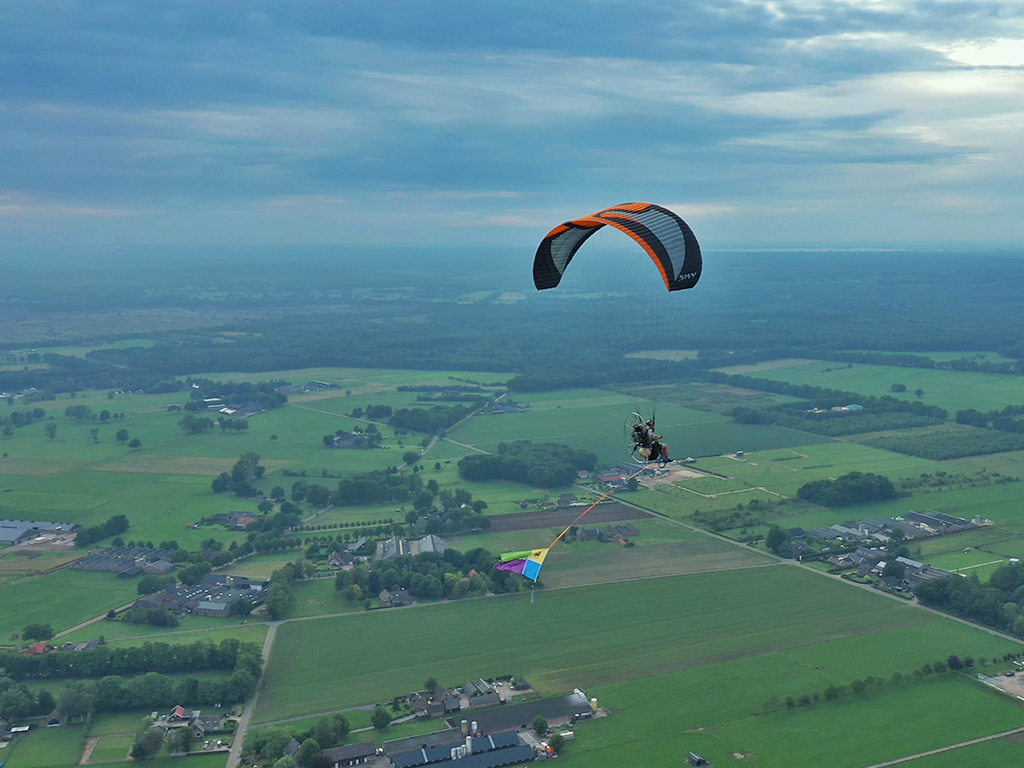 UDDEL – De nieuwe Uddelse vlag is dinsdagavond op spectaculaire wijze onthuld. De vlag werd geruime tijd gesleept door een paramotorvlieger boven het dorp.
