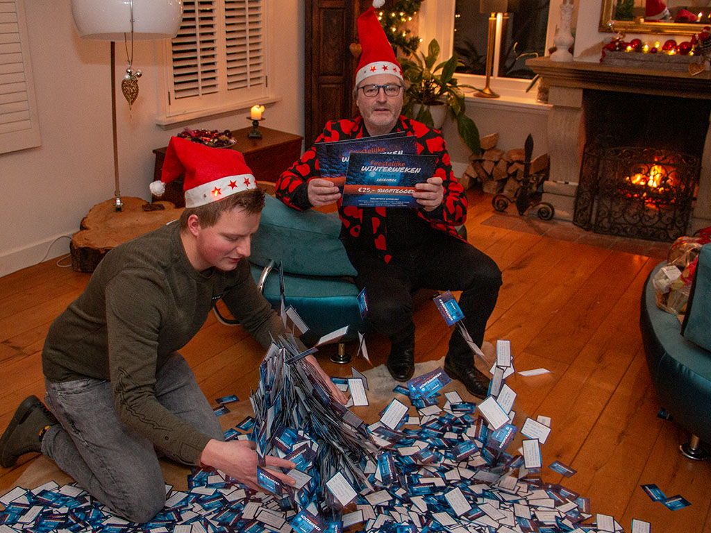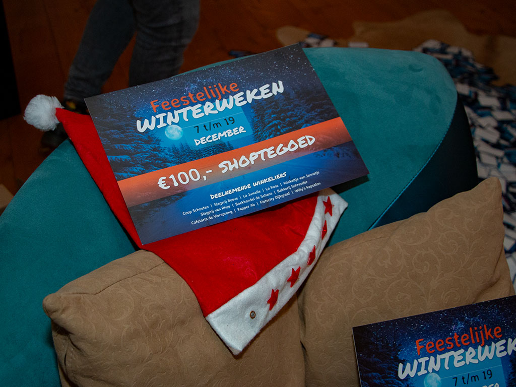 Organisator Frank Boeve trok de kaartjes samen de met Egbert Jan van Bel, voorzitter van Ondernemersvereniging Uddel. De eerste prijs, 100 euro shoptegoed in Uddel, is gegaan naar Peter van Rhee uit Uddel. De tweede prijs, 50 euro shoptegoed, is voor Janneke van Kempen uit Ermelo. De derde prijs, 25 euro shoptegoed, gaat naar José van Asselt uit Uddel.