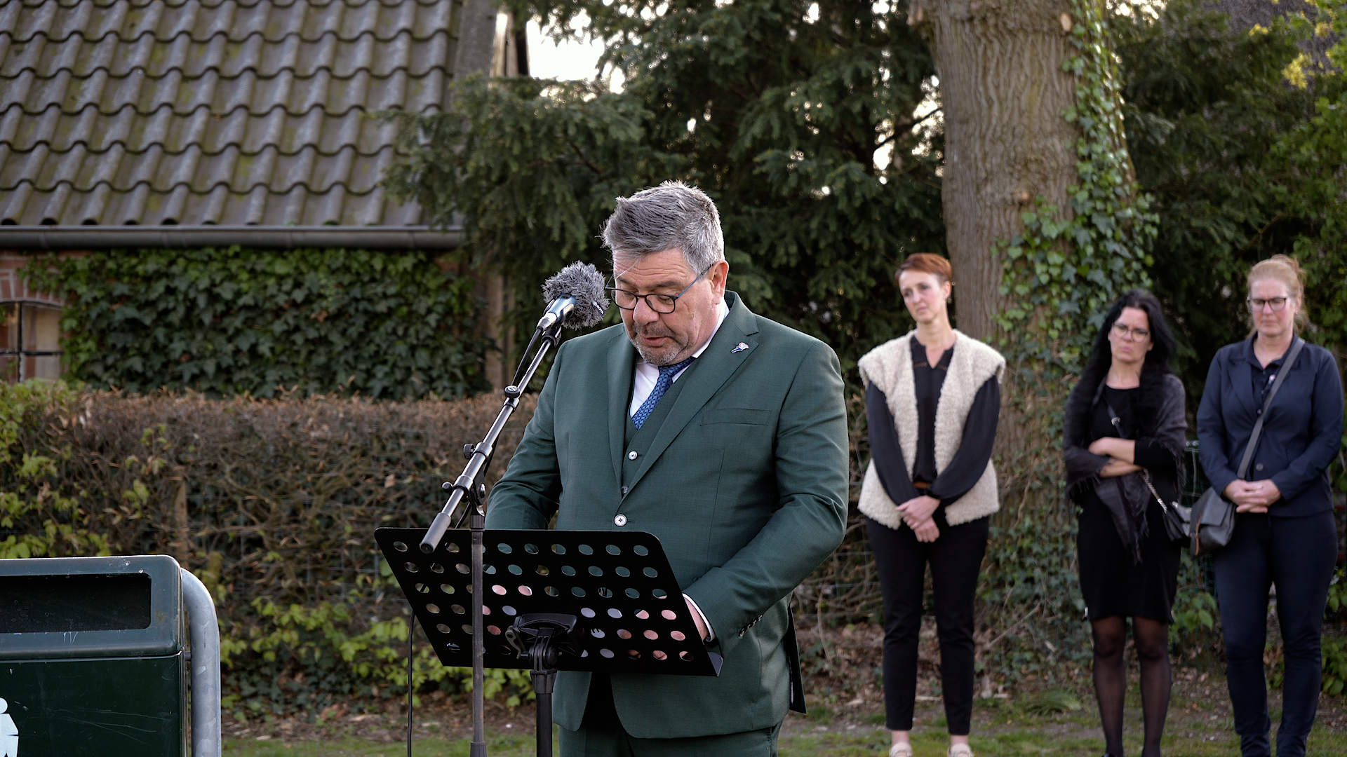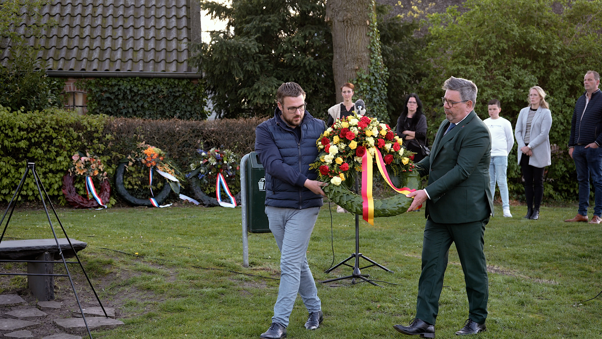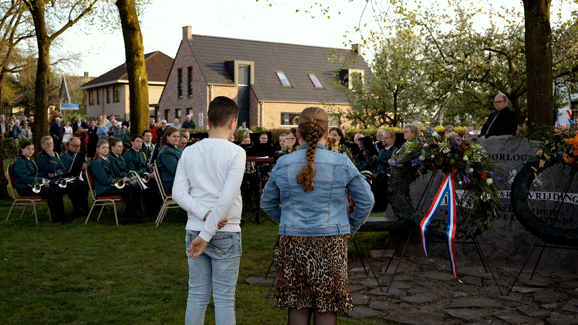 UDDEL – Terwijl de vogels hun hoogste lied floten, de schapen blaten in de wei, en de zon haar laatste stralen over Uddel uitdeelde kwamen vele mensen samen bij het beeld aan de Uttilochweg om samen te herdenken. In grote getale was men aanwezig. Muziekvereniging Juliana speelde mooie gedragen muziek en Angelique Bronkhorst sprak namens de oranje vereniging. Namens de gemeente Apeldoorn was loco burgemeester Danny Huizer aanwezig. Gerbert van den Hoek speelde de reveille, gevolgd door twee minuten stilte. Daarna werd het Wilhelmus gezongen. Een bijzonder en ontroerend moment. Elk jaar weer. Er werden kransen gelegd en dit jaar werd er ook door de scholen een krans gelegd en Fennette Hop en Boaz van As mochten deze taak op zich nemen. Uddel kan terugzien op een waardige dodenherdenking.