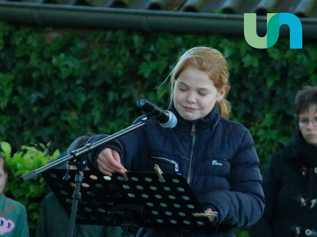 Emma Kok en Femke Bronkhorst lazen beiden een gedicht voor. Ter afsluiting van de herdenking konden de kinderen een roos bij het monument leggen.