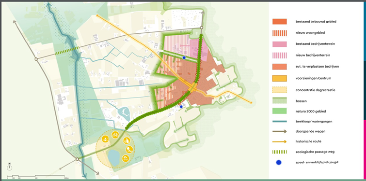 Patrick Hulshof: “Deze schets komt uit de Werkgroep Leefbaarheid Uddel, als deel van de gebiedsaanpak GEUS. Vanaf de zomer van 2023 zijn er diverse overlegtafels als Leefbaarheid, Agrarische sector, Natuur en Water en Recreatie. De schets is een discussiestuk voor de uitbreidingslocatie voor het bedrijventerrein, in lijn met VitaliteitsAgenda Uddel en de omgevingsvisie.”