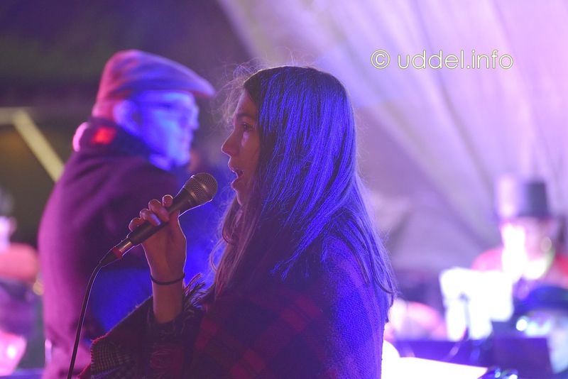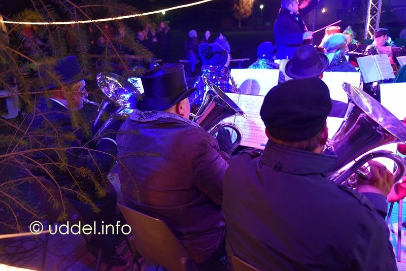 Buiten in de open lucht, er waren een paar tenten geplaatst, klonken de mooie klanken, gespeeld door Juliana onder leiding van Dethmer Jan van Heerde, door het Uddelse luchtruim. De leden van Juliana waren allemaal in ‘Dickensstijl’ gekleed, wat een prachtig gezicht was. Naast de muziek was er de soliste Gianne Marsman. Zij zorgde met haar prachtige stem voor warmte bij het aanwezige publiek, dat bestond van zeer jong tot mensen op hoge leeftijd. Er was na afloop van dit Winterconcert dan ook een welverdiend applaus voor de muziekvereniging en de soliste.