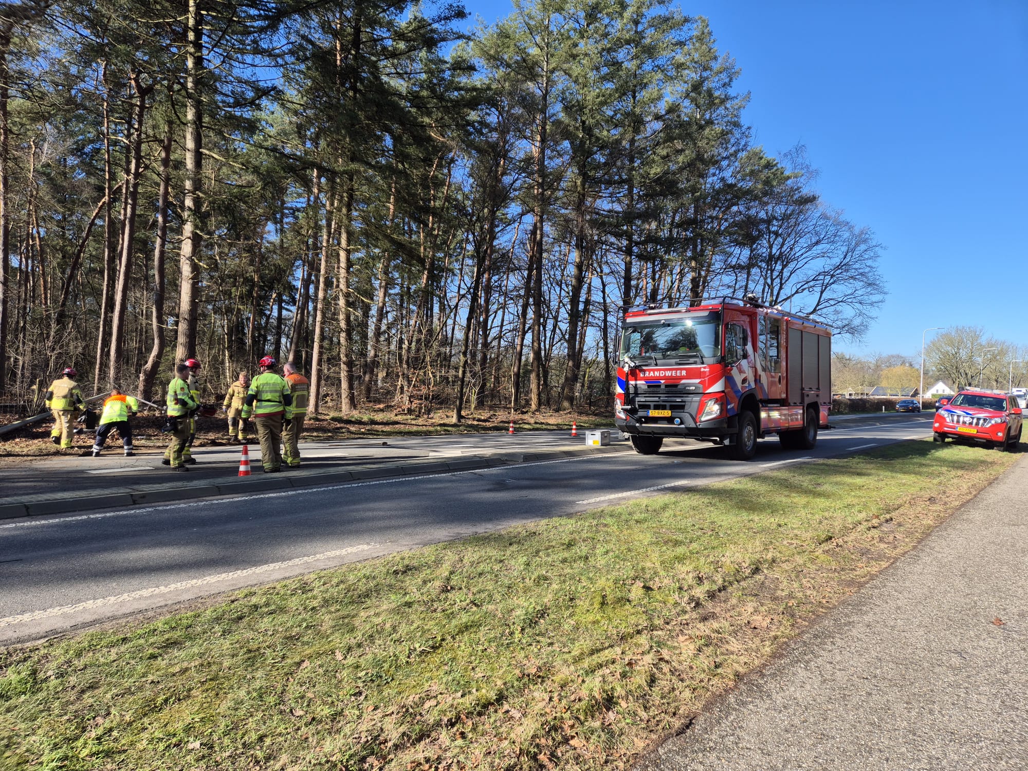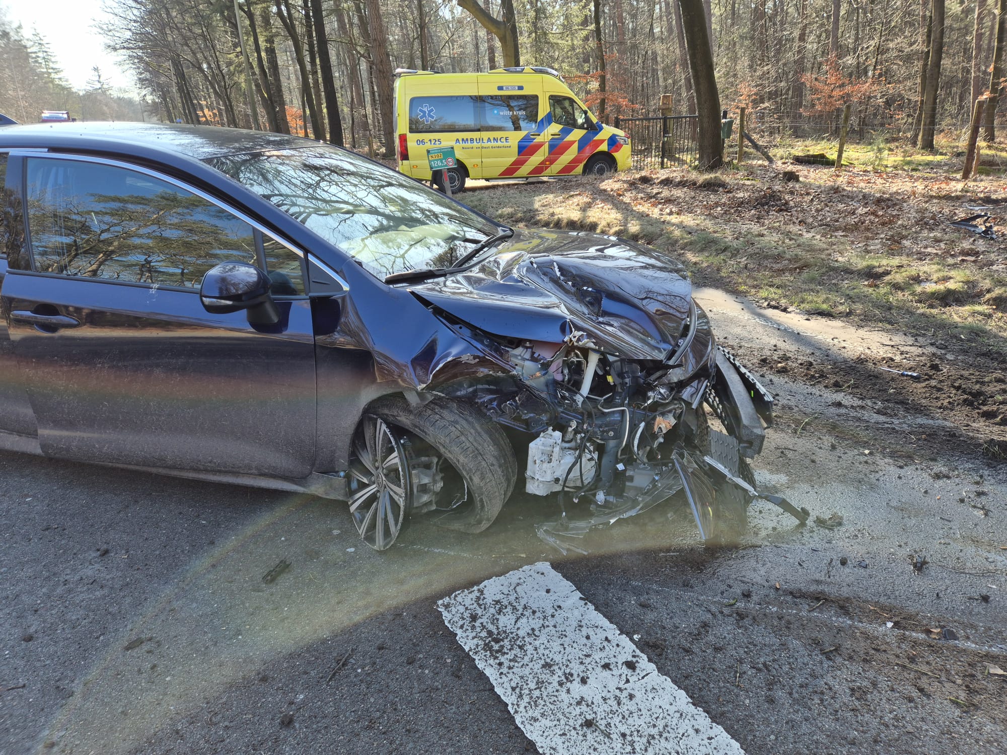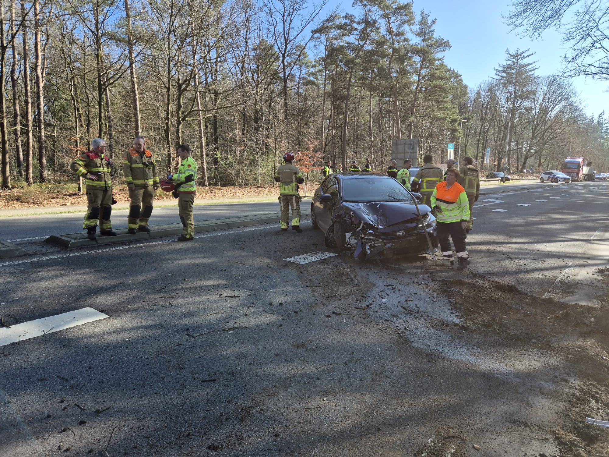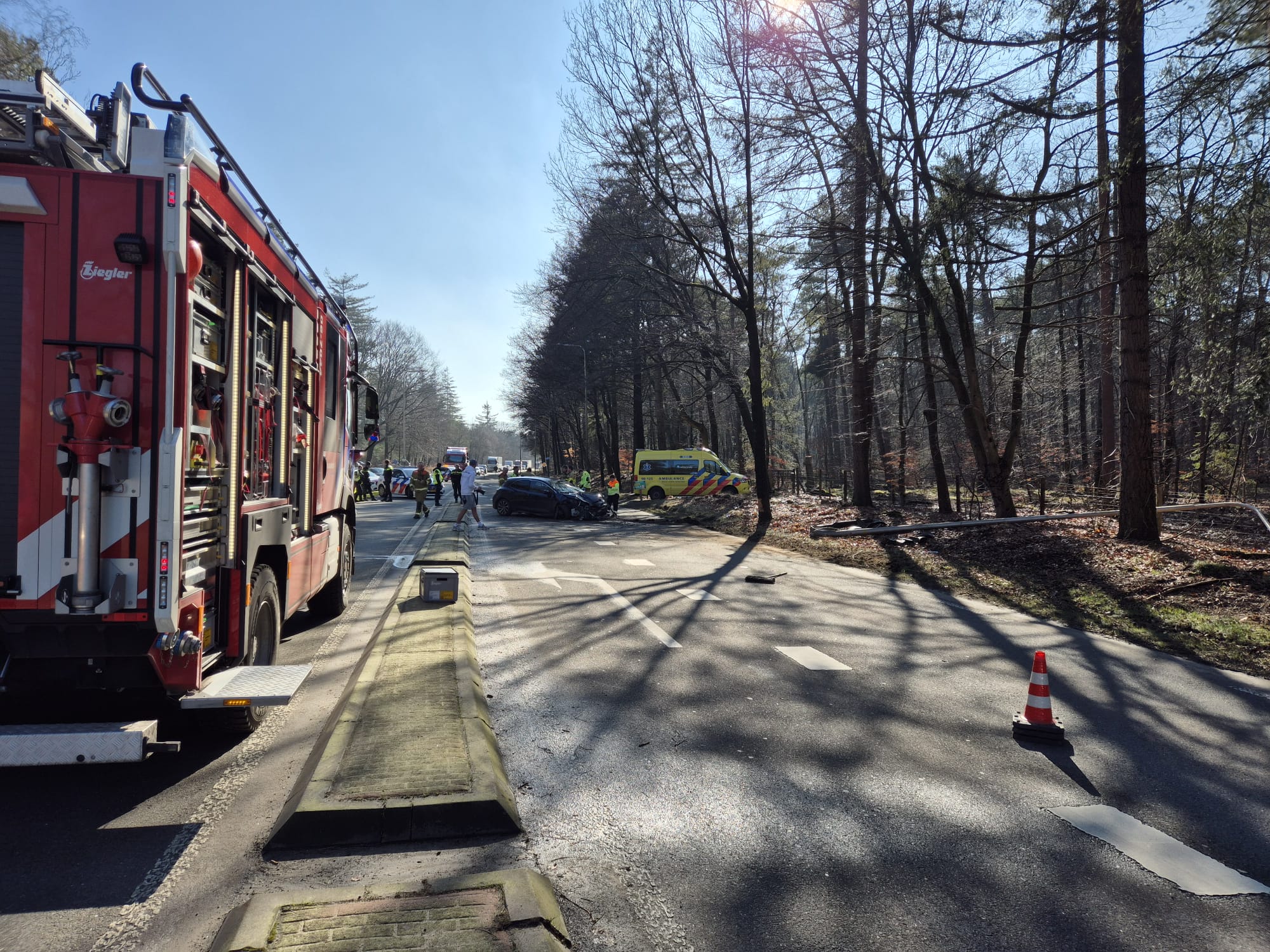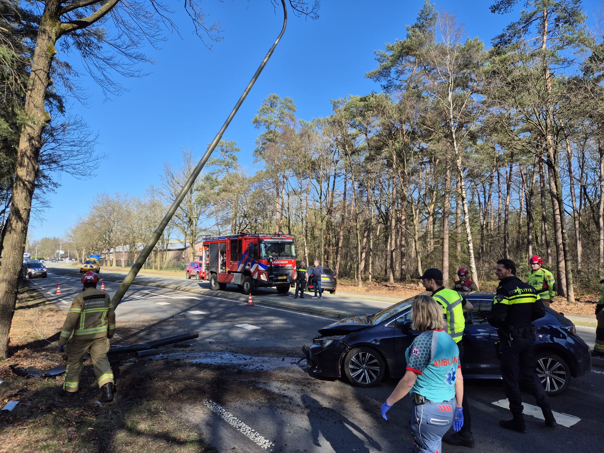 UDDEL – Woensdagmiddag 25 februari heeft er een eenzijdig ongeval plaats gevonden op de Kootwijkerweg in Uddel. Hier raakte een bestuurder van een auto, door nog onbekende oorzaak, van de weg en raakte hierbij een lantaarnpaal. De hulpdiensten als ambulance, politie en brandweer Uddel kwamen ter plaatse om hulp te verlenen. De bestuurder is met de ambulance naar het ziekenhuis gegaan voor controle. Brandweer Uddel heeft de lantaarnpaal verwijderd om verdere gevaarlijke situaties te voorkomen. Dit zorgde voor oponthoud voor weggebruikers doordat het verkeer tijdelijk maar 1 zijde van de weg kon gebruiken. De beschadigde auto is door een bergingsbedrijf verwijderd van de weg waardoor de weg weer vrij werd voor verkeer.