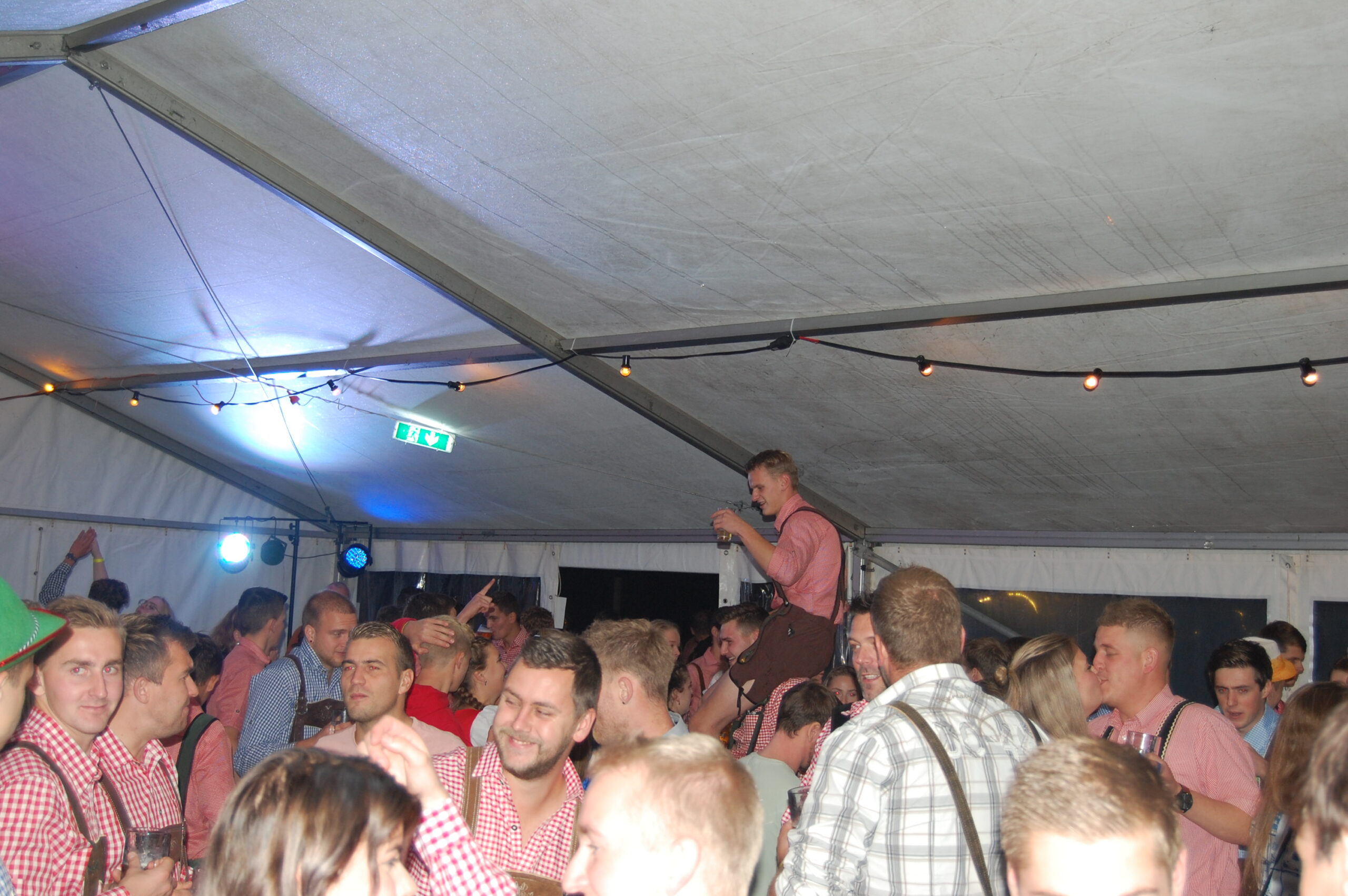 De voorbereidingen waren al maanden in volle gang. Winanda, Naomi en Anne-Marein waren de meiden die dit gingen organiseren, en we kunnen wel zeggen dat ze dit met veel succes hebben gedaan. Mede dankzij een aantal sponsoren en een hele goede kaartverkoop konden we een grote tent laten zetten en het echte Oktoberfest-gevoel beleven. Tijdens de controles die we kregen van politie en gemeente bleek dat de dames zich goed voorbereid hadden en geen commentaar kregen. Altijd een fijn gevoel als alles klopt.