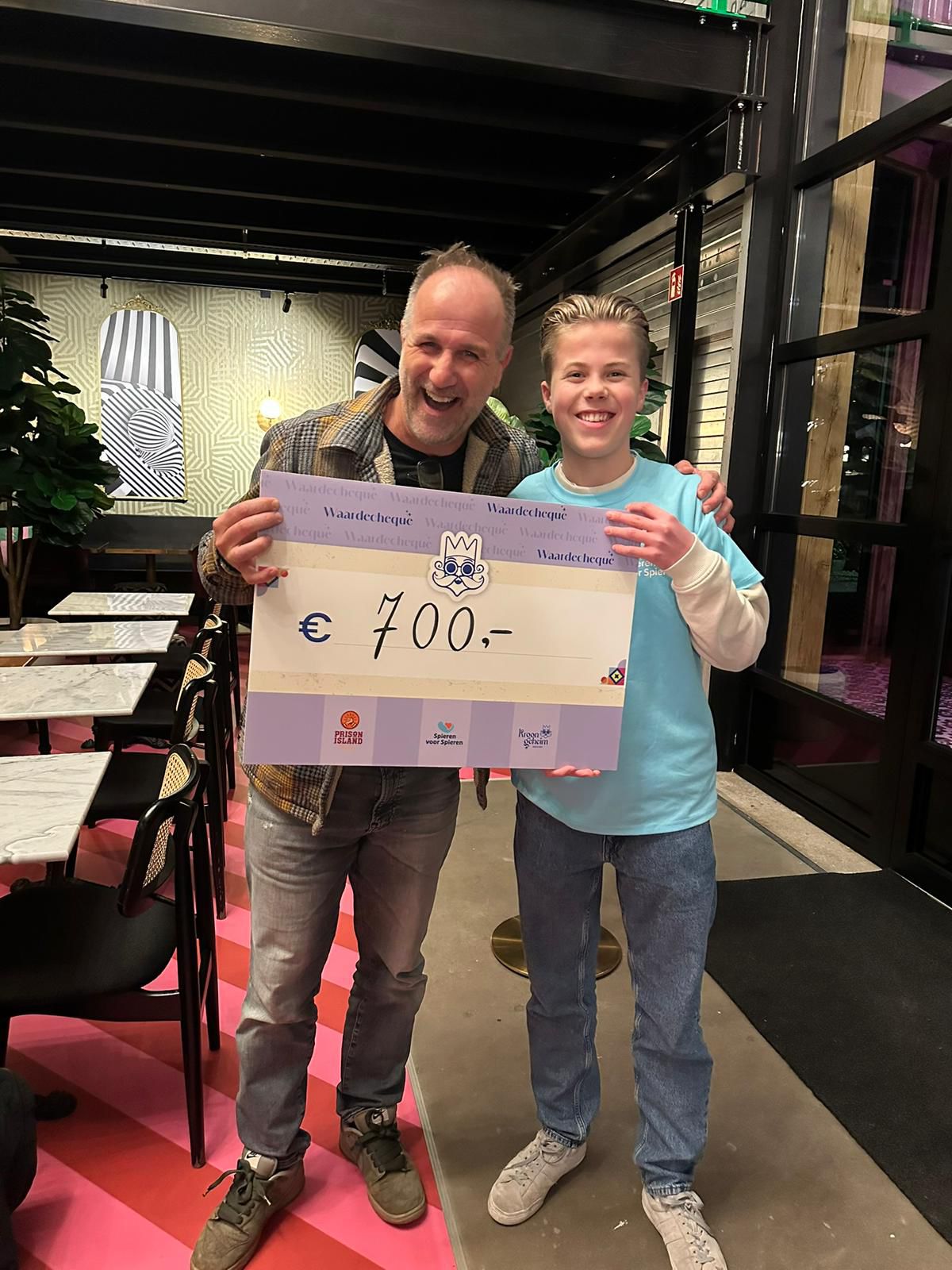 UDDEL – De gevangeniscellen van Prison Island Veluwe bij Kroongeheim stonden de afgelopen dagen in teken van het goede doel. Tijdens de speciale avonden op dinsdag 27 en woensdag 28 januari gingen fanatieke teams uit de omgeving vol enthousiasme de strijd aan. Niet alleen voor de winst, maar vooral voor het goede doel: Spieren voor Spieren én dorpsgenoot Janick. Met die inzet werd een prachtig bedrag van €700 opgehaald voor Spieren voor Spieren.