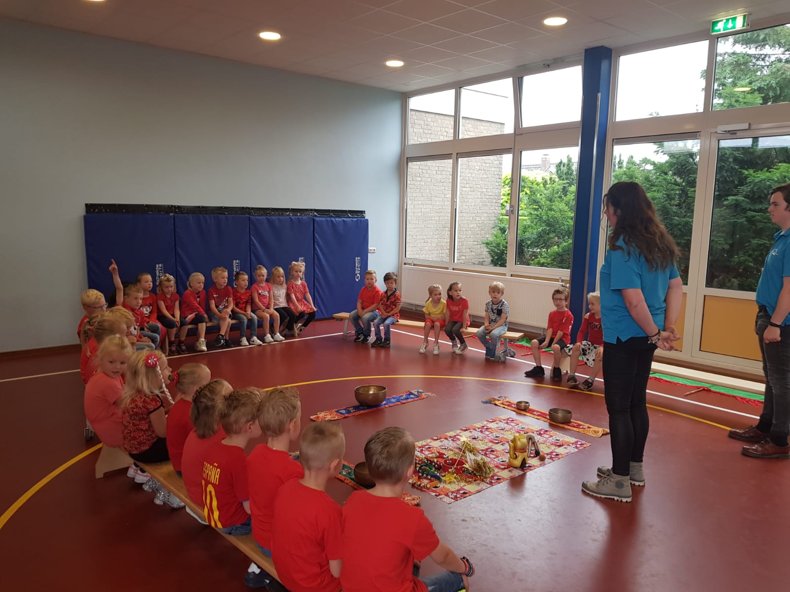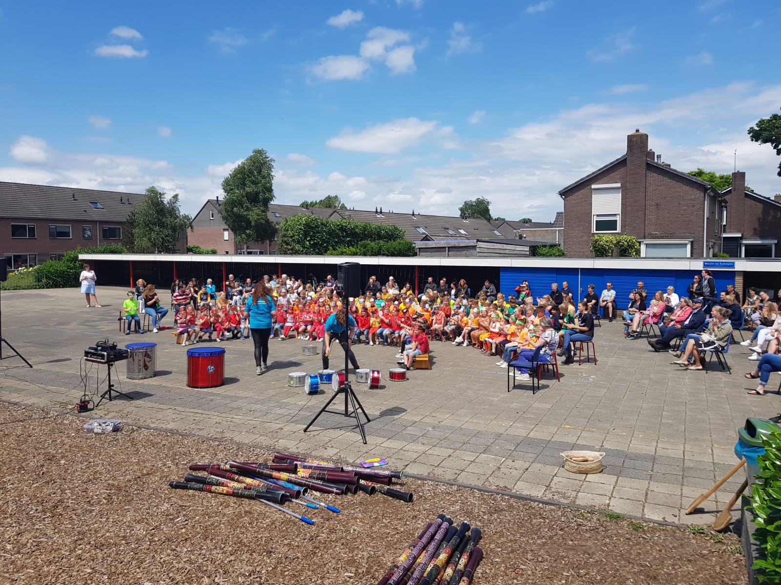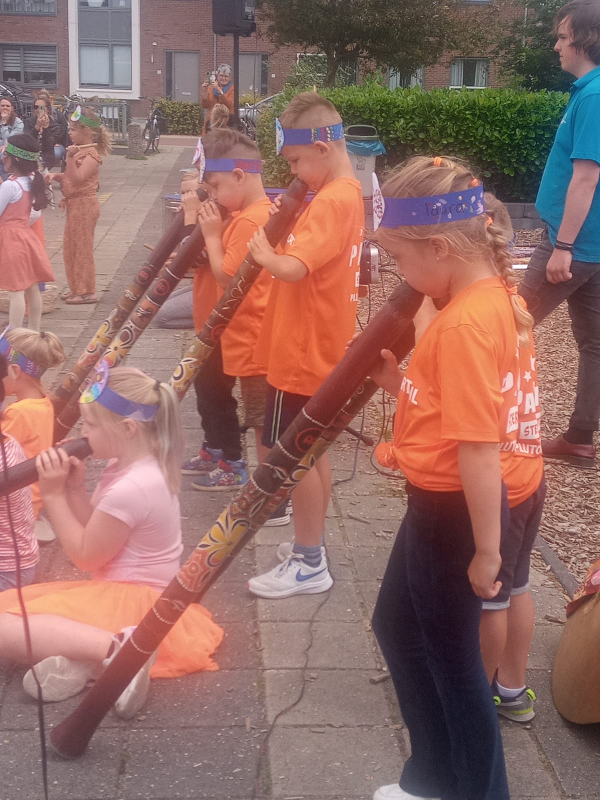 In elke groep werd er een optreden voorbereid rondom een bepaald werelddeel. Dit optreden stond met name in het teken van muziek. Zo hebben we Azië, Australië, Zuid-Amerika en Afrika langs zien komen. Vanmiddag hebben we opgetreden voor de hele school en kwamen er ook veel ouders, opa’s en oma’s, broers en zussen langs om te kijken.