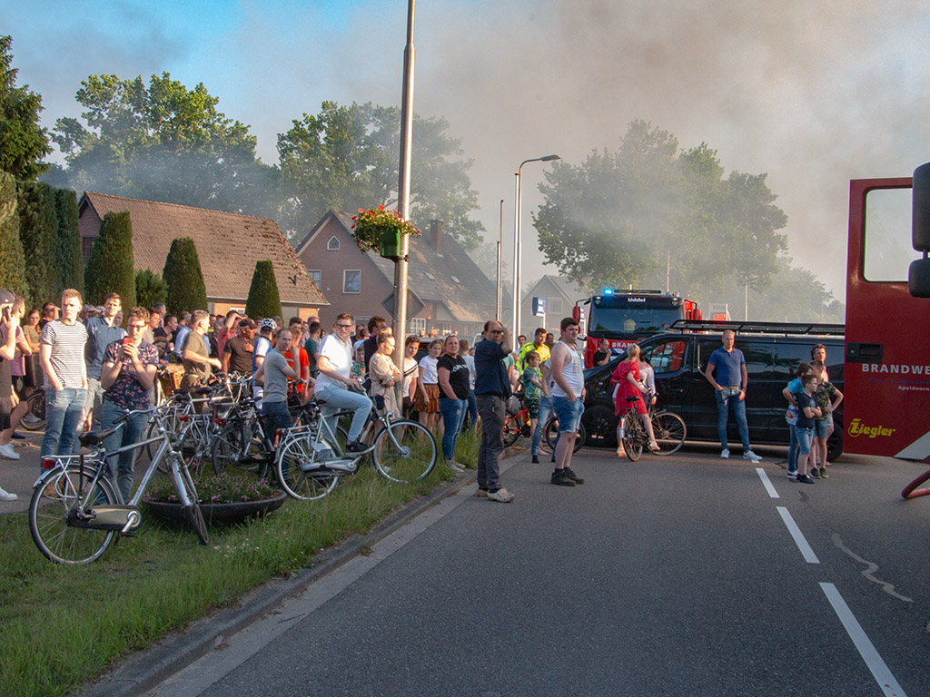 De brand trok veel bekijks. De Elspeterweg werd volledig afgesloten voor het verkeer.