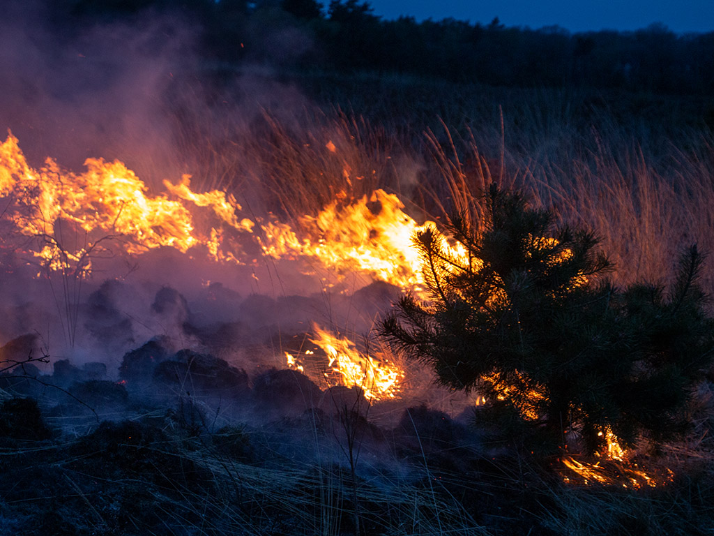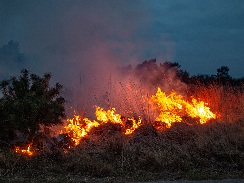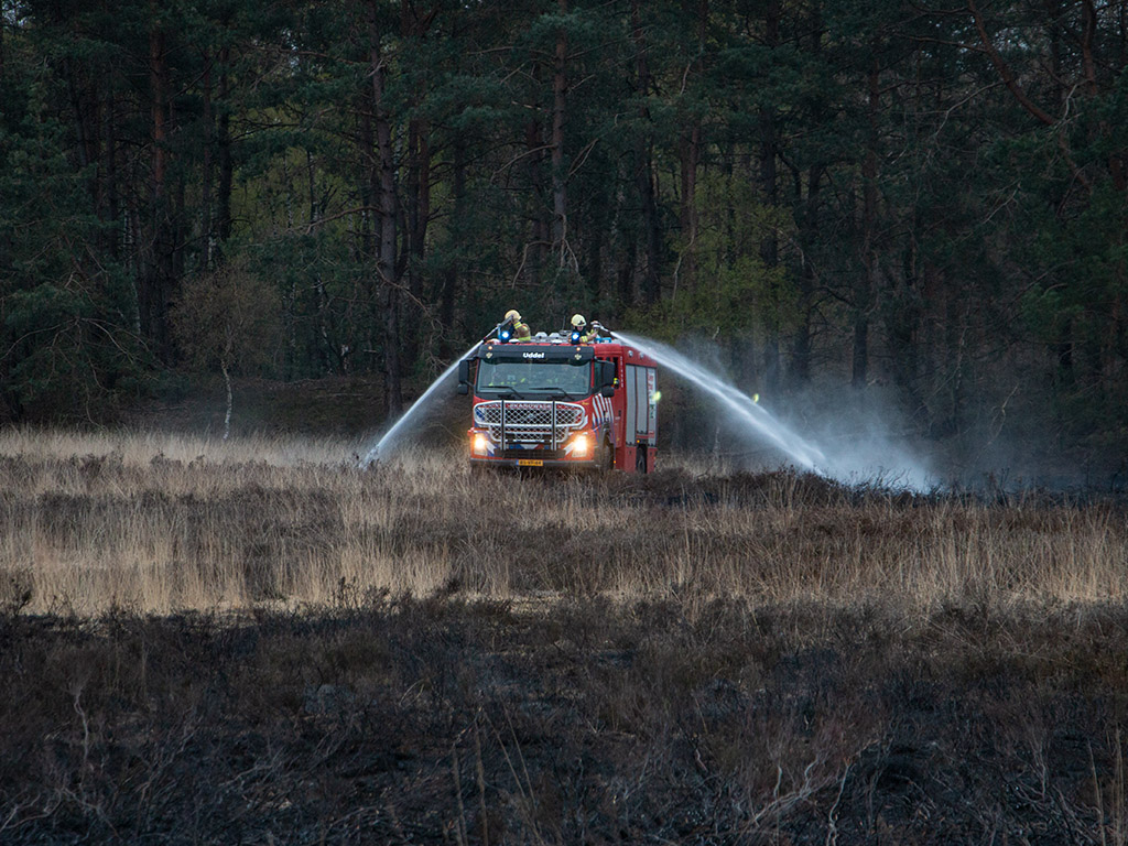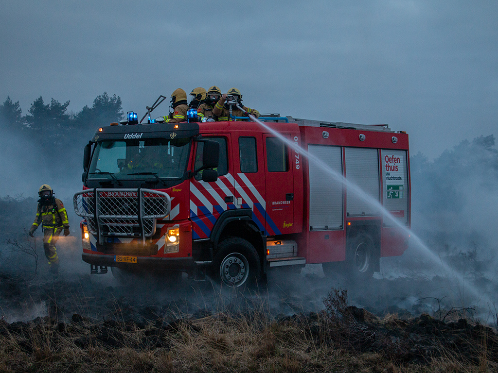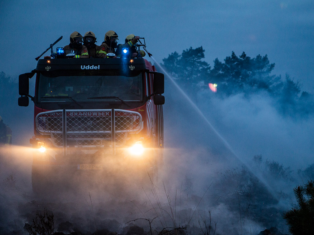 UDDEL – De brandweer is zondagmorgen rond 6 uur uitgerukt voor een flinke heidebrand aan de Aardhuisweg. Een hectare heide is in vlammen opgegaan.