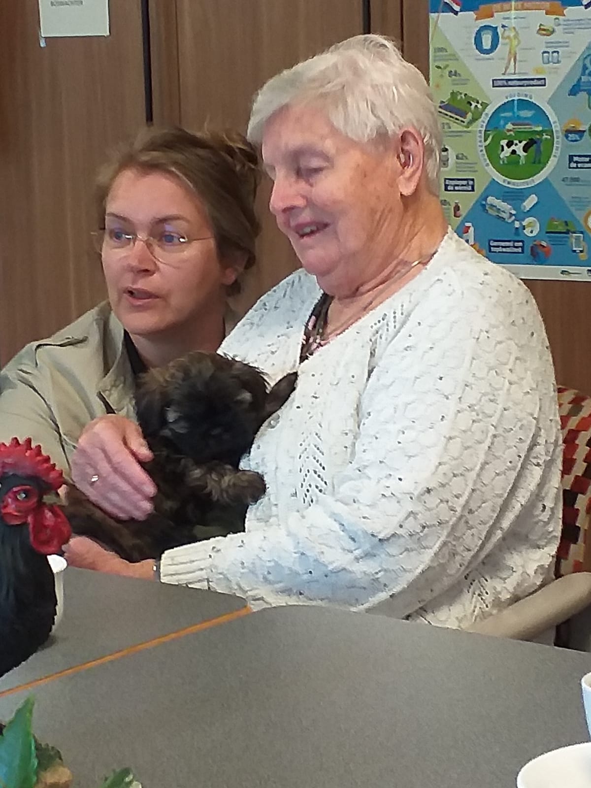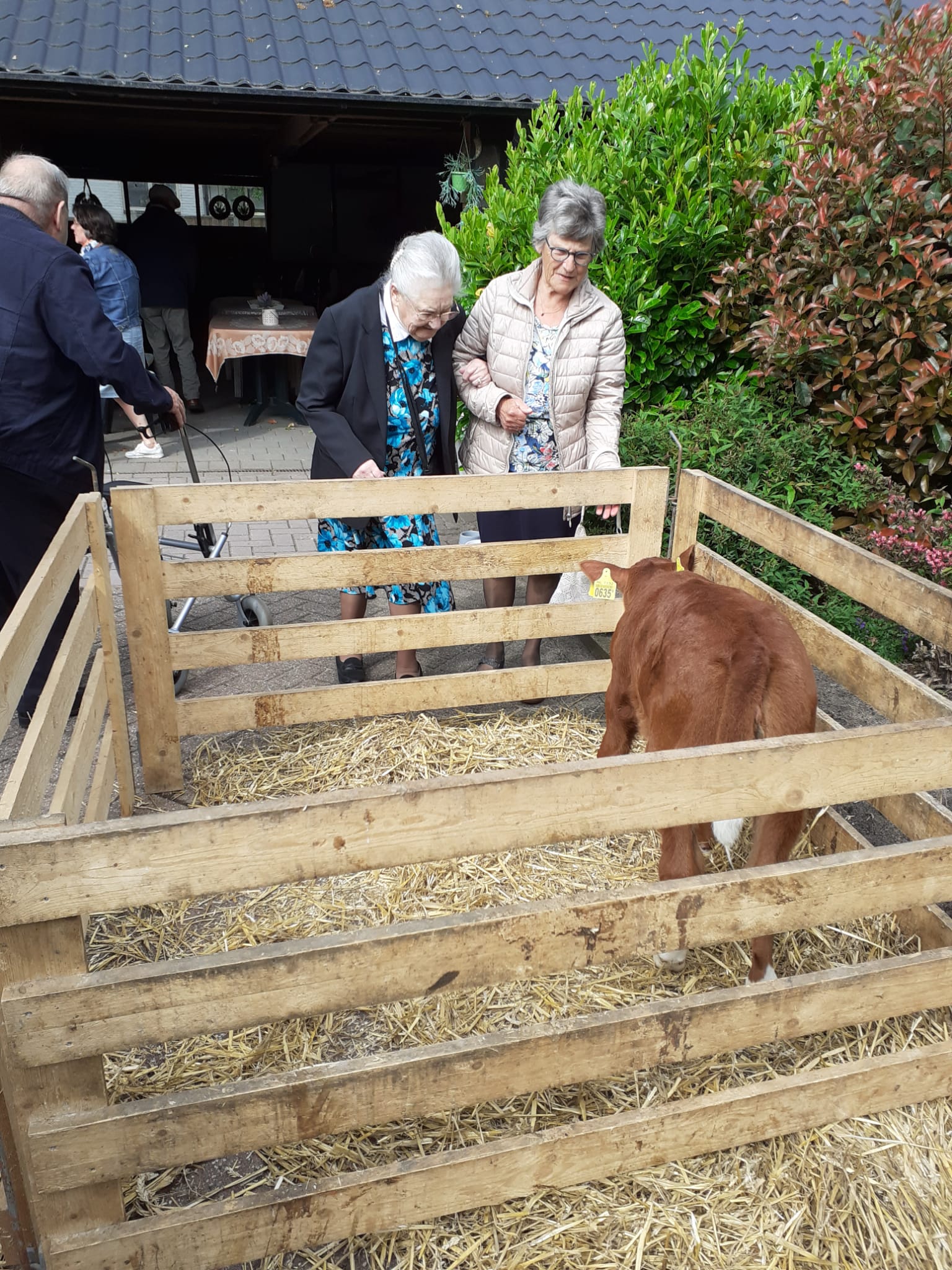 In de zaal stond een bak met kuikentjes onder een warmtelamp en in de wei voor het pand werden lammetjes geboren en schapen geschoren. Ter ere van de geboorte van de lammetjes trakteerde “boer” Willem ons op een mooie slagroomtaart.