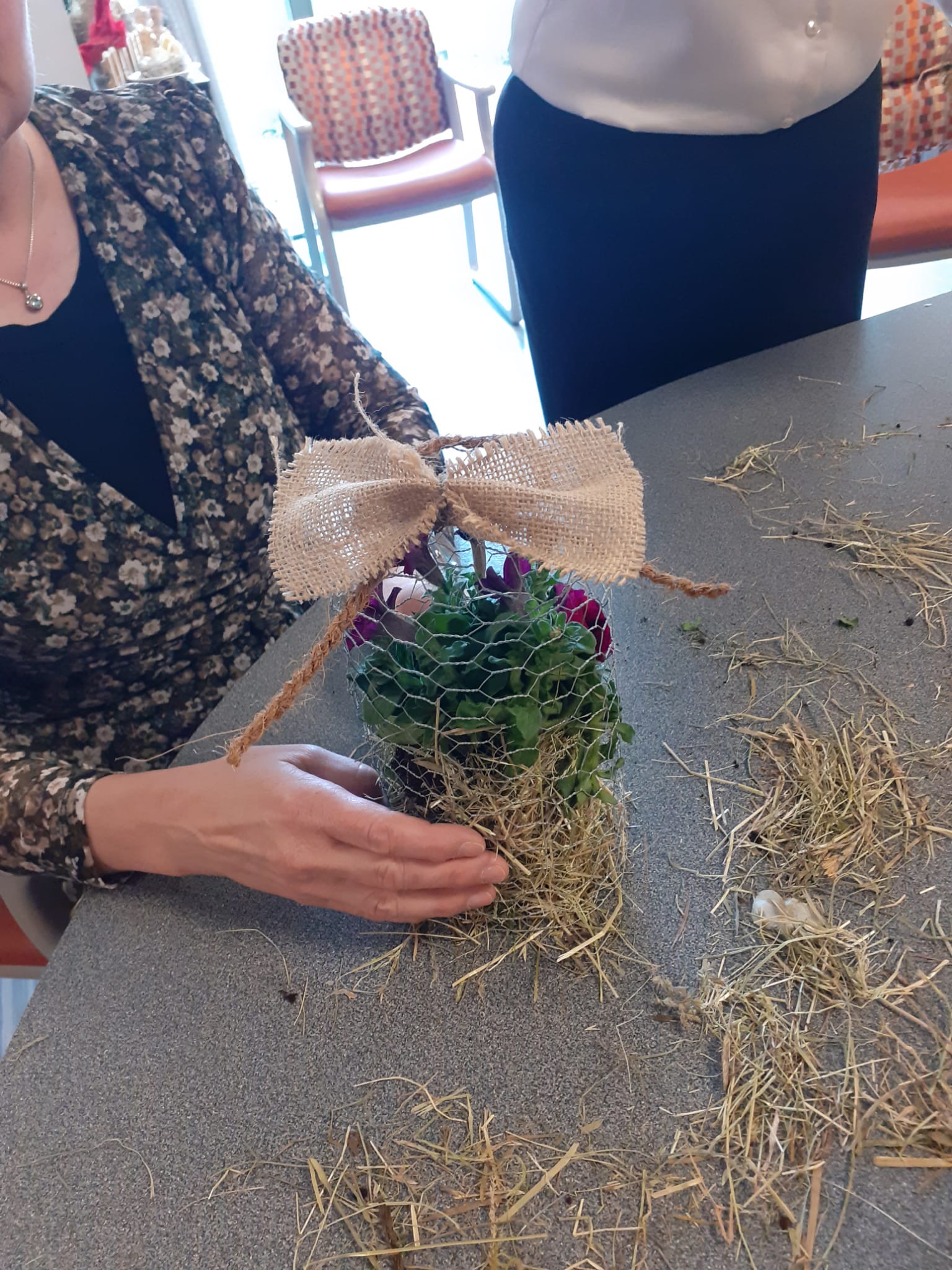 We kregen hondjes op bezoek en werkten met stro en kippengaas.
