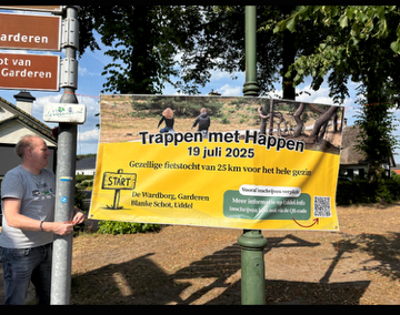 Zaterdag 19 juli hebben we een fietstocht georganiseerd, en niet zomaar een fietstocht. Bij deze hoeft u thuis niet te eten, wij zorgen voor het eten en drinken onderweg. Deze worden u aangeboden door een aantal plaatselijke ondernemers uit Uddel en Garderen.