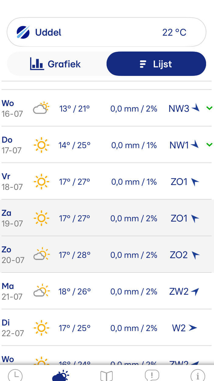 Zoals het er nu uitziet krijgen we fantastisch mooi weer, 25 graden met een zonnetje. Mooier kan bijna niet.