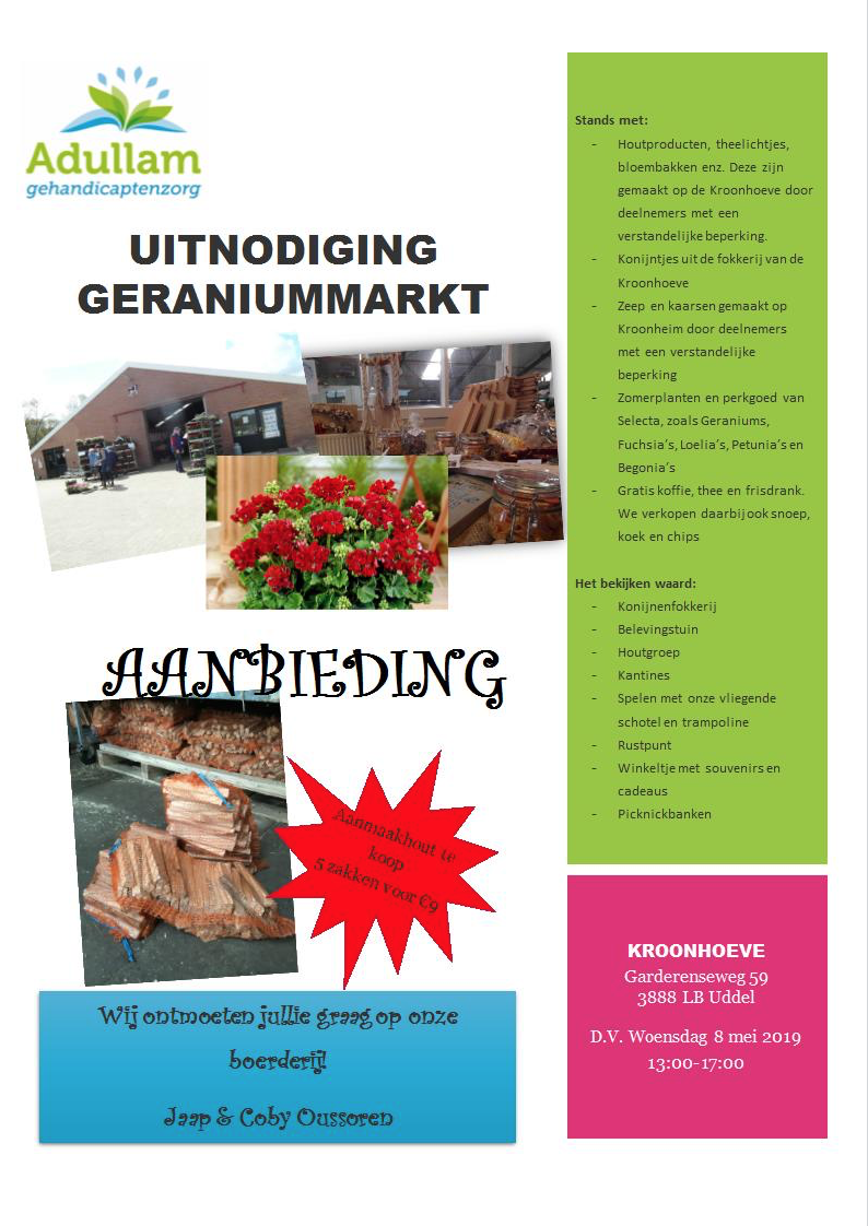 UDDEL – Op 8 mei 2019 wordt op de Kroonhoeve weer een Geraniummarkt georganiseerd.