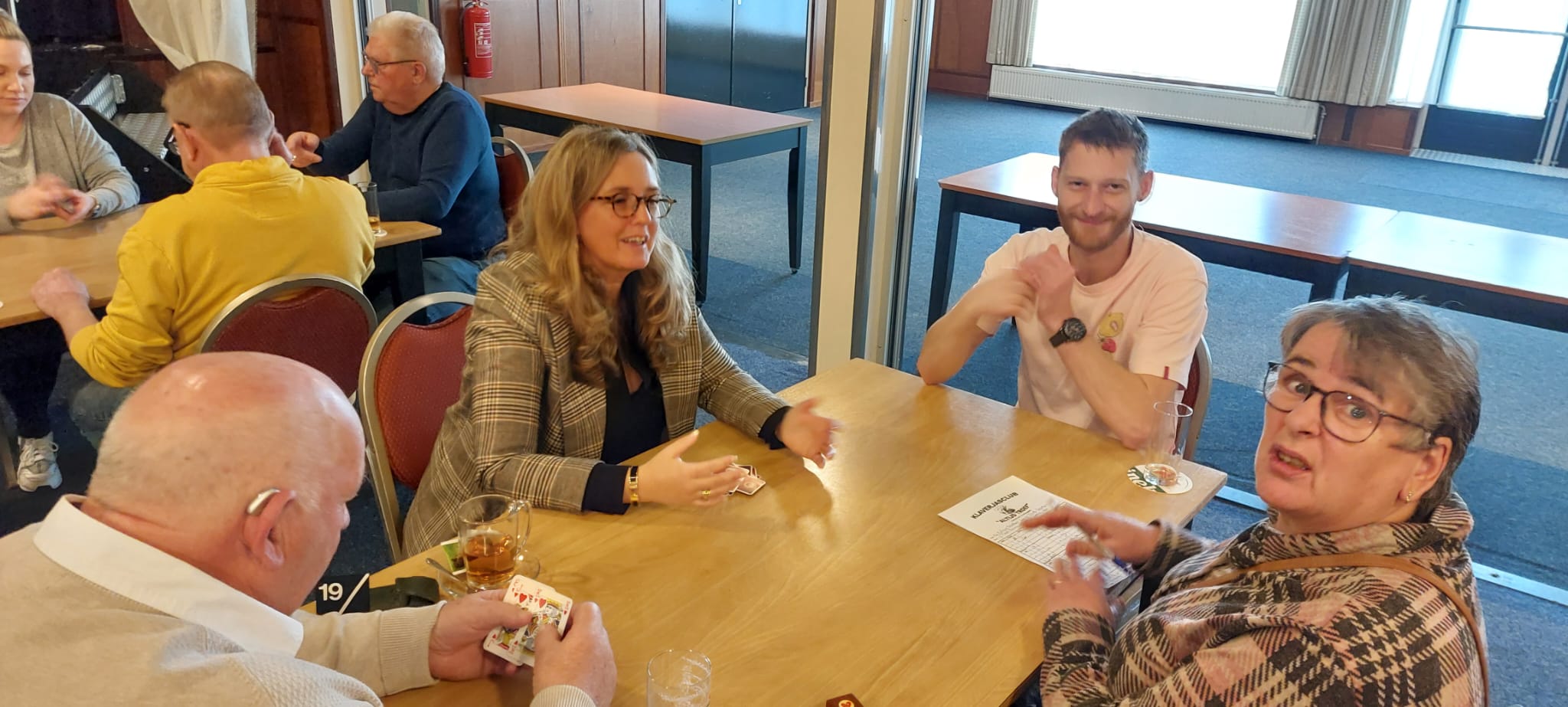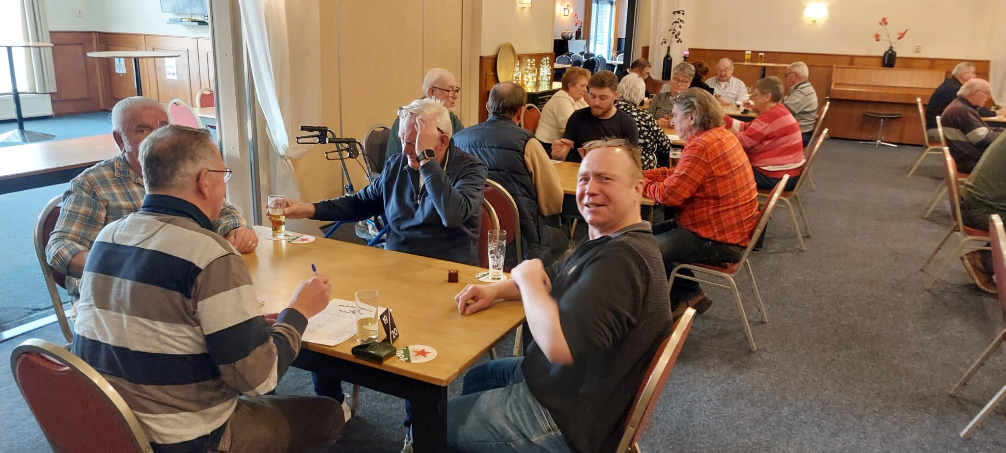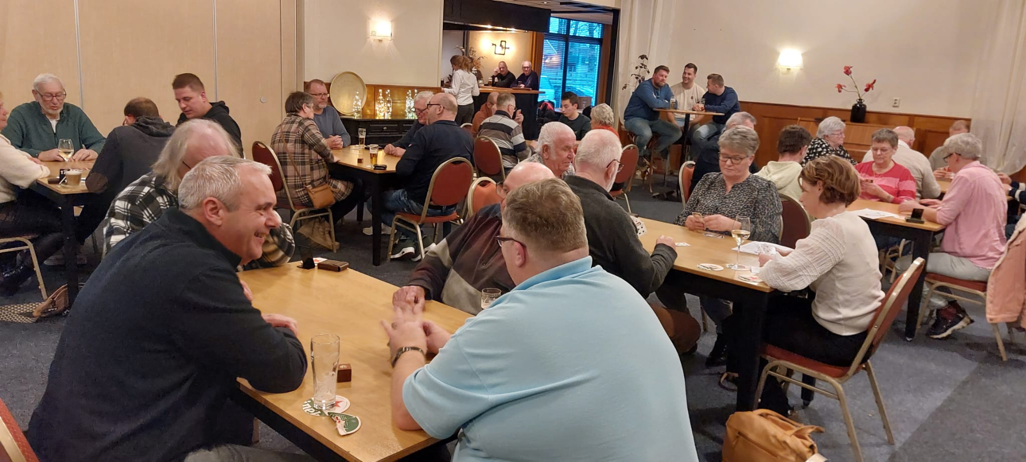 Er waren 58 deelnemers, waarvan 52 personen gingen klaverjassen. De overige deelnemers gingen jokeren. Er werd gezellig gekaart, daarnaast was er een hapje en een drankje en verkoop van lootjes.