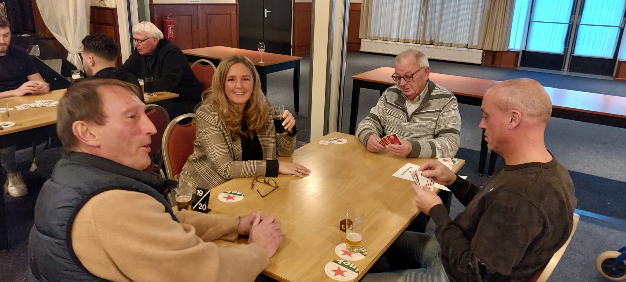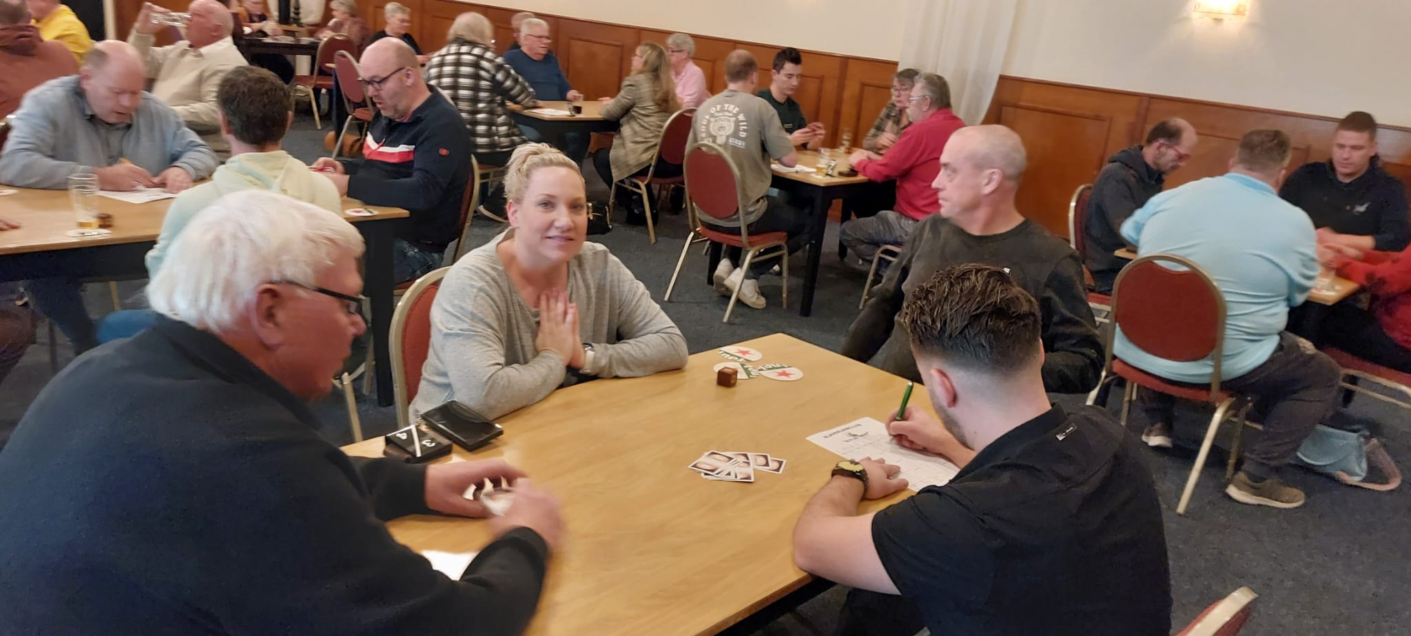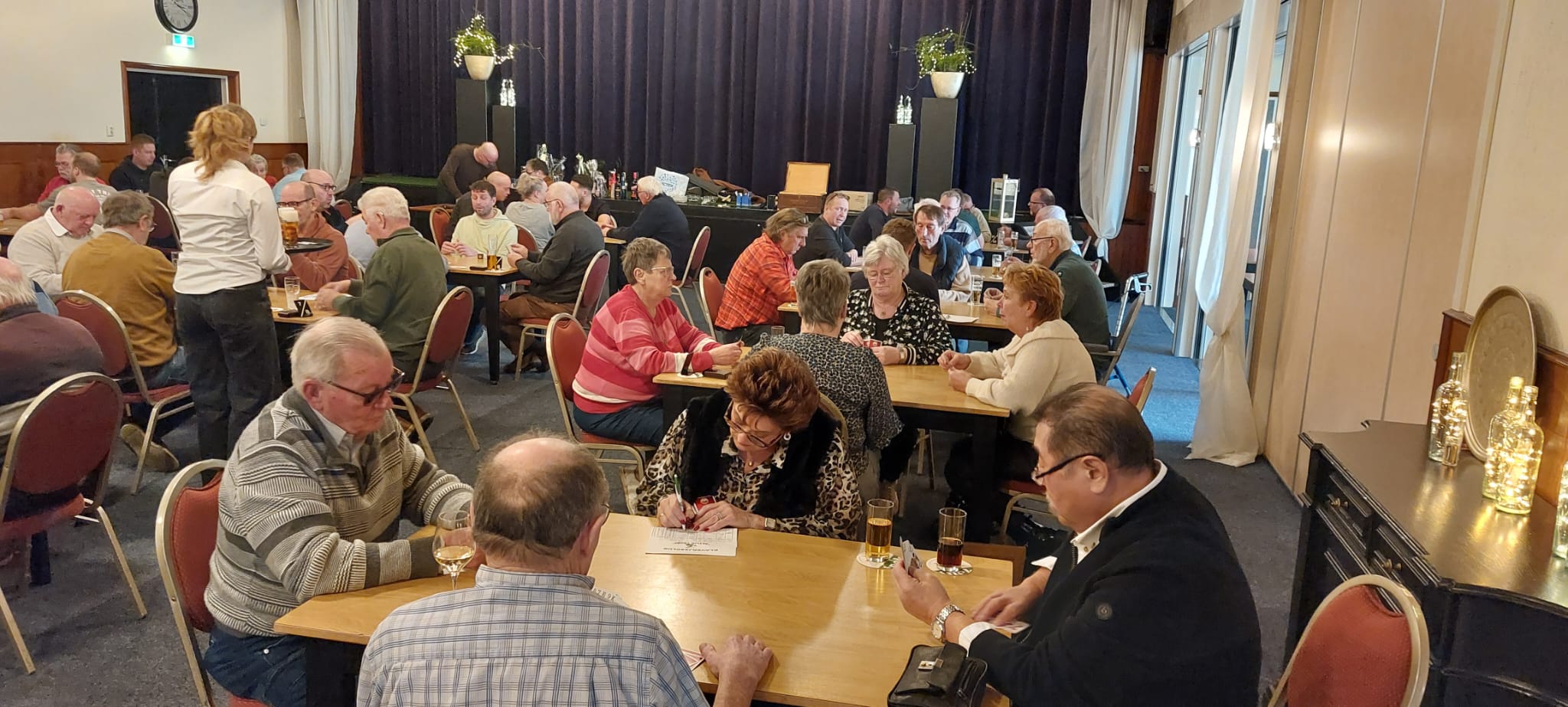 Er waren 58 deelnemers, waarvan 52 personen gingen klaverjassen. De overige deelnemers gingen jokeren. Er werd gezellig gekaart, daarnaast was er een hapje en een drankje en verkoop van lootjes.