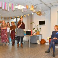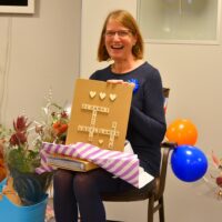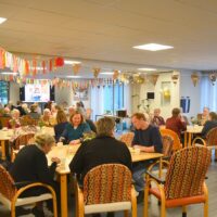 De zaal was versierd met ballonnen en slingers en zat vol met zo’n 70 enthousiaste mensen. Onder het genot van koffie met wat lekkers kon Gretha genieten van hun aanwezigheid en belangstelling.