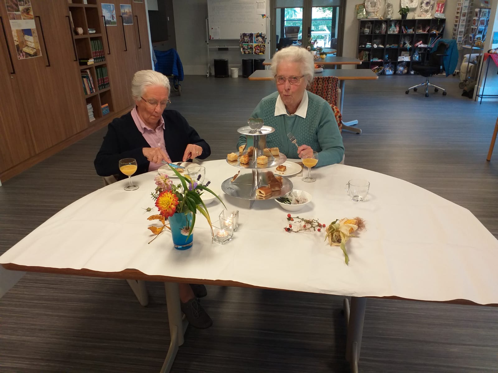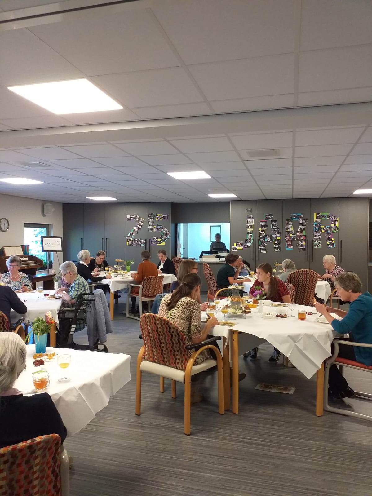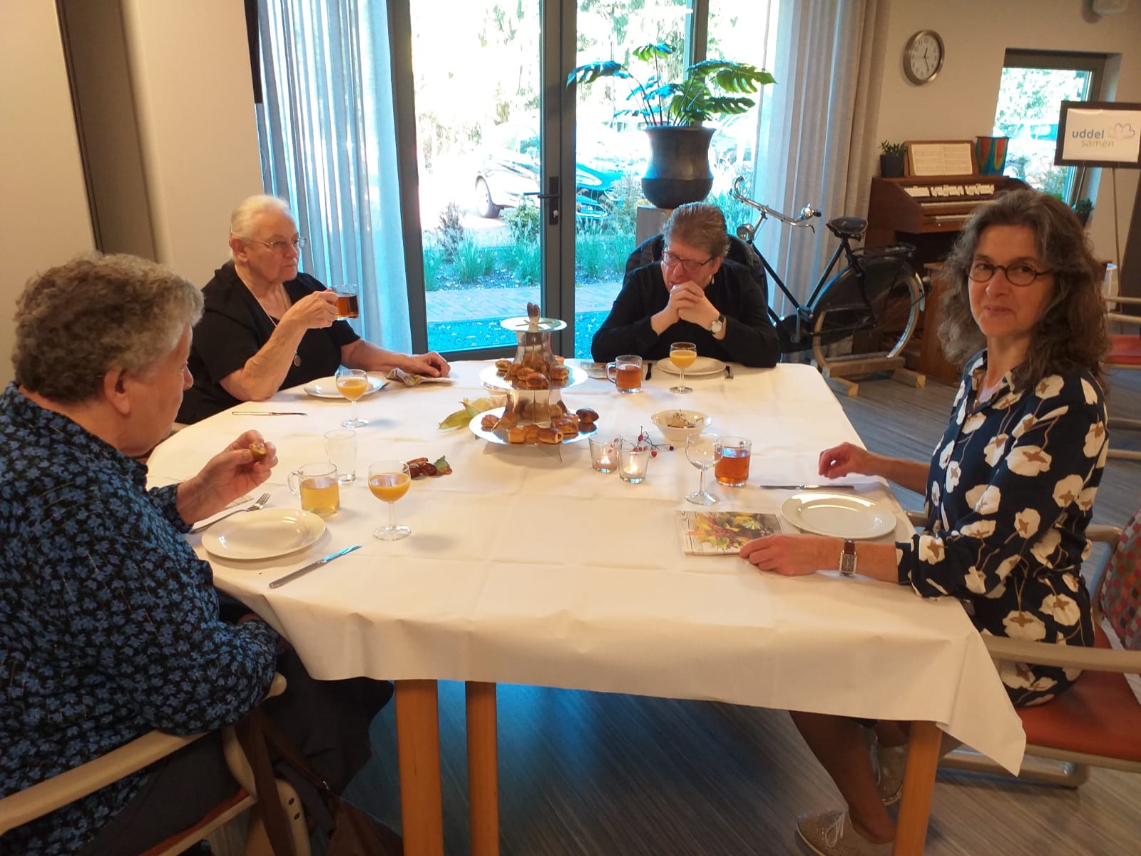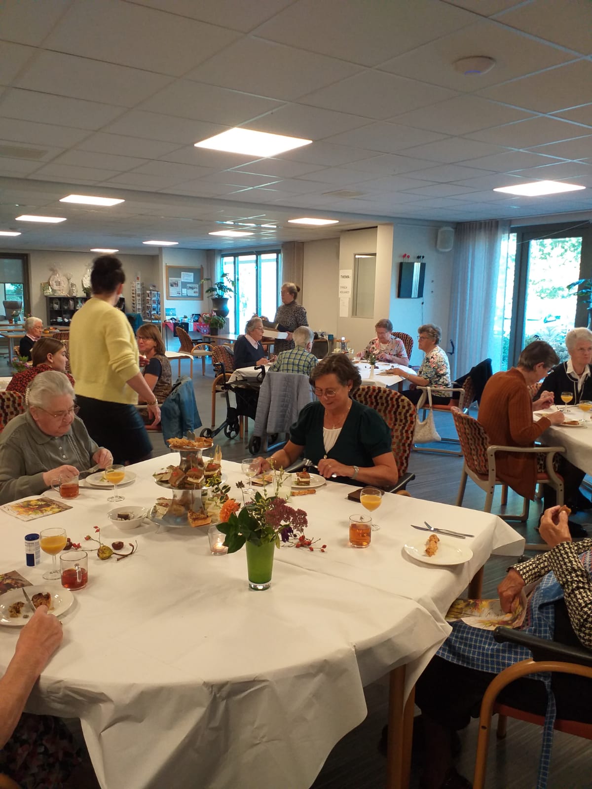 UDDEL – Bezoekers van de Wilhelminahof kregen op dinsdag 5 en vrijdag 8 oktober een heerlijke herfst high tea aangeboden. Andere jaren gaan de deelnemers van de dagbesteding altijd een dagje uit, maar door de corona- maatregelen is dit nu niet mogelijk. De paddenstoelensoep werd gekookt door onze kookvrijwilligers en de hapjes werden klaargemaakt door de Beeldentuin uit Garderen.