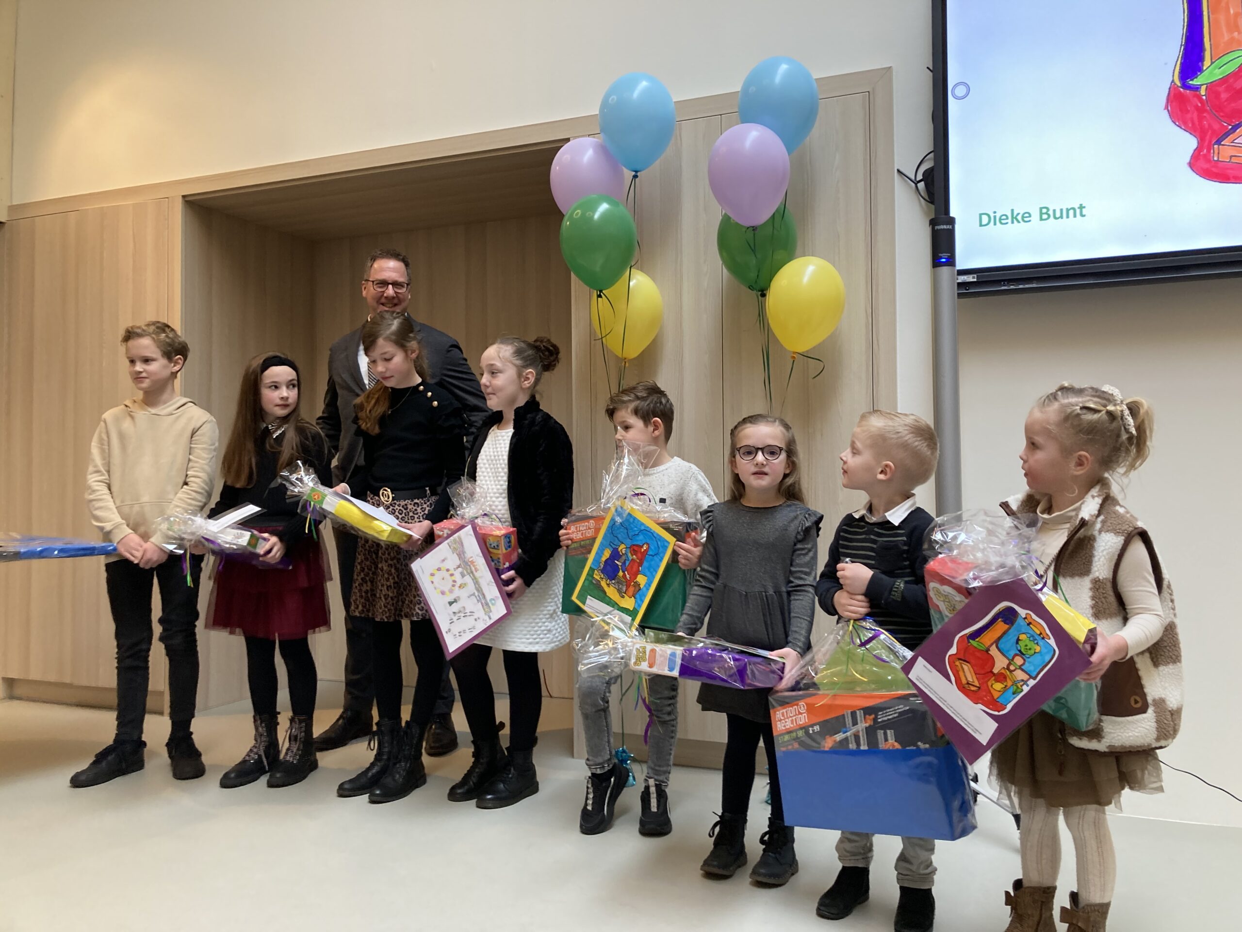 Er was een wedstrijd georganiseerd voor alle leerlingen. Uit iedere groep is één winnaar gekozen. Deze leerlingen mochten een prijs in ontvangst nemen.