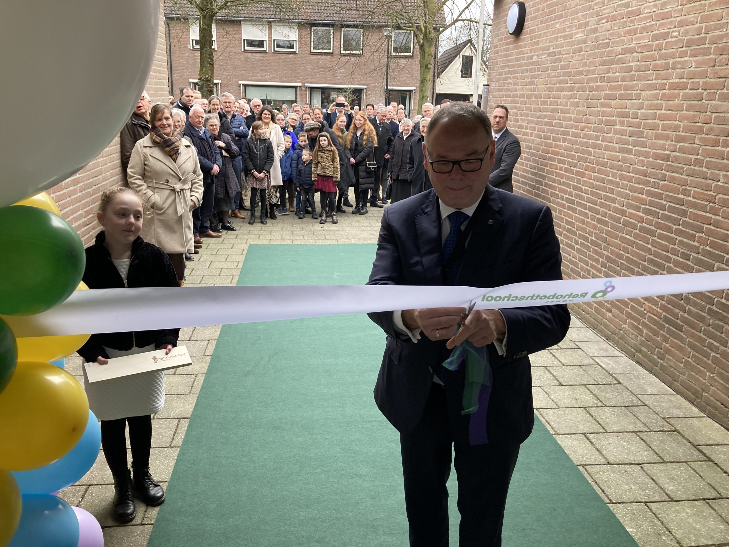 UDDEL – Zaterdag 11 februari was de heropening van de Rehobothschool. Wethouder H. van den Berge heeft de school officieel heropend door het knippen van een lint. Hierna hebben enkele sprekers het woord gevoerd.