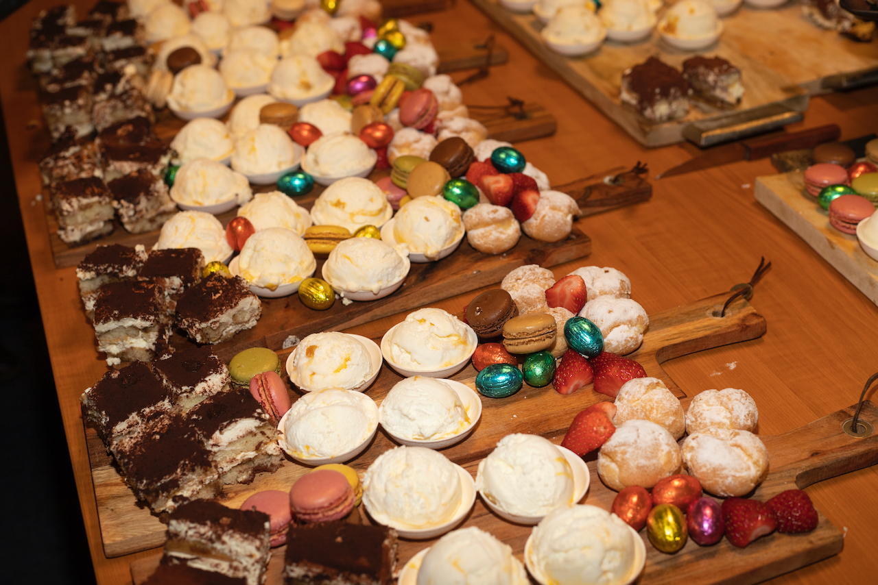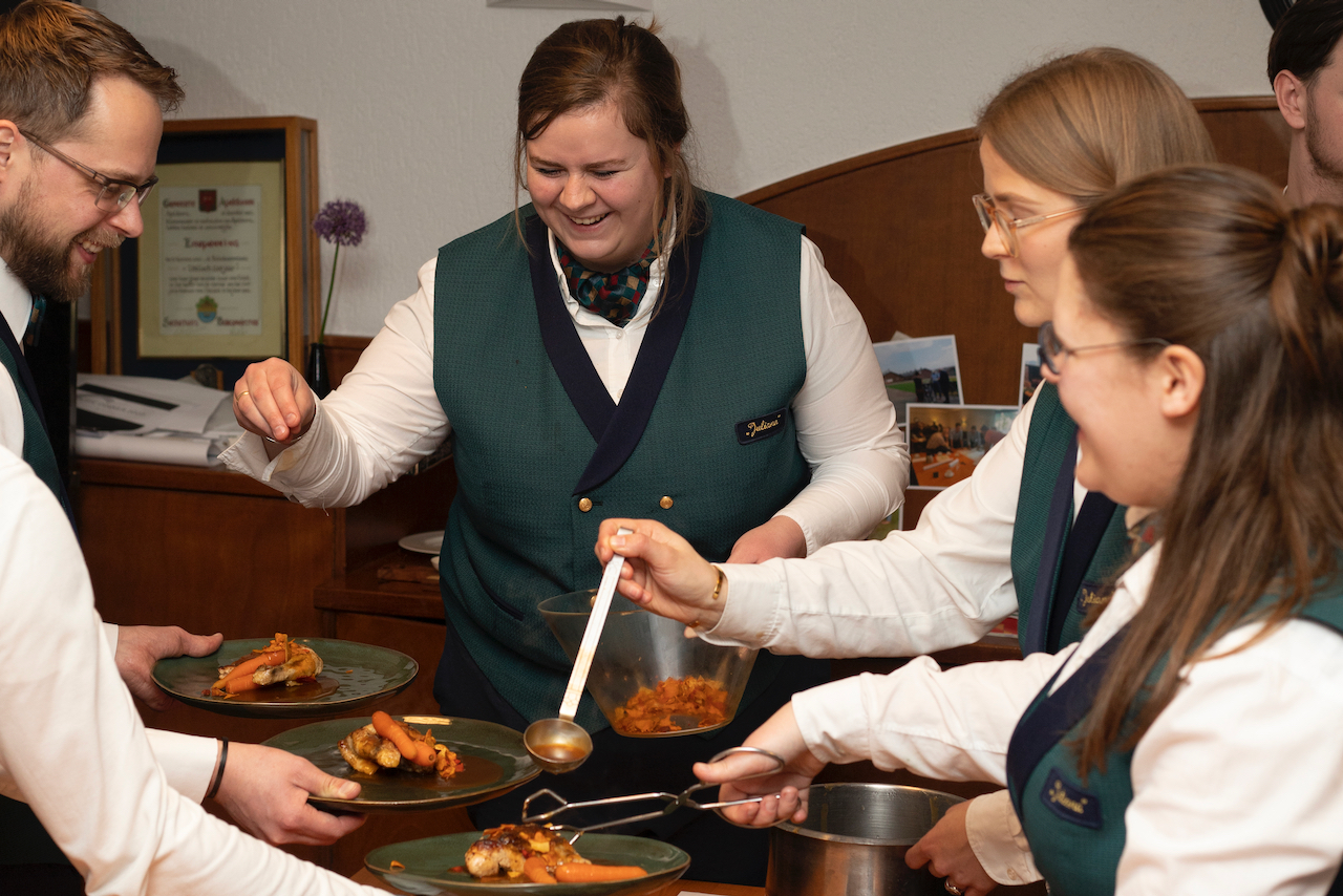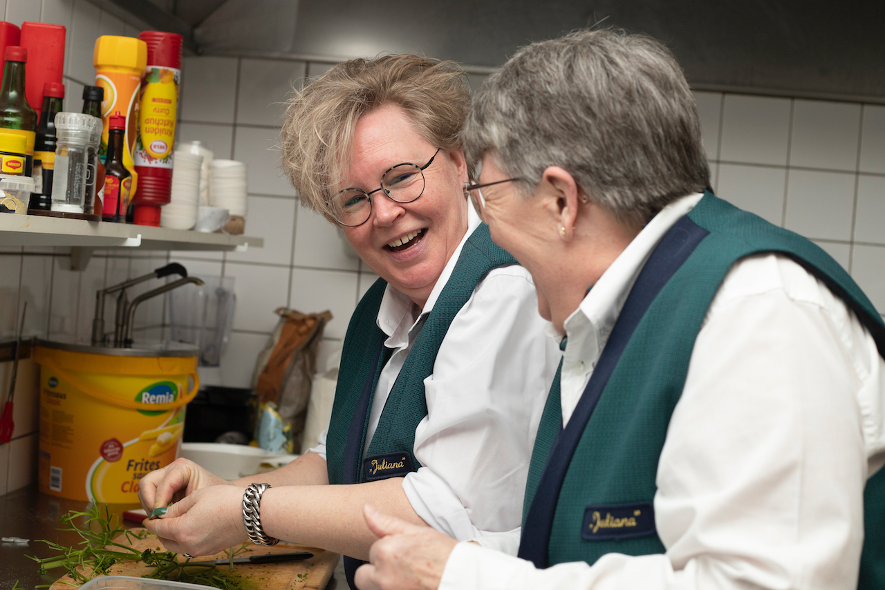 Voor de gasten was er een viergangenmenu met amuse bereid onder leiding van Grietje Wajer-Versteeg. De gasten werden verrast met allerlei verschillende culinaire hoogstandjes zoals heilbot als voorgerecht en parelhoender als hoofdgerecht. De verschillende gangen werden uitgeserveerd door de muzikanten van Juliana zelf. Gehuld in uniform hielpen alle leden mee om de borden bij de juiste tafels te brengen. Deze dubbelrol viel, net als het eten, erg in de smaak.