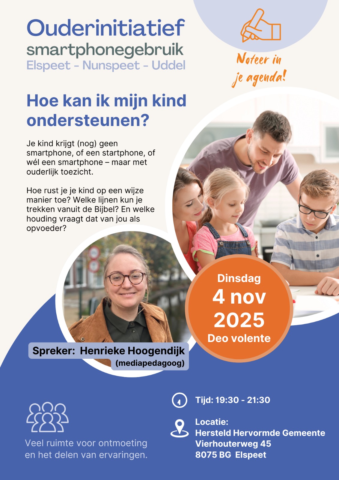 - Voor wie: Ouders, opvoeders en overige belangstellenden uit Elspeet, Nunspeet en Uddel.